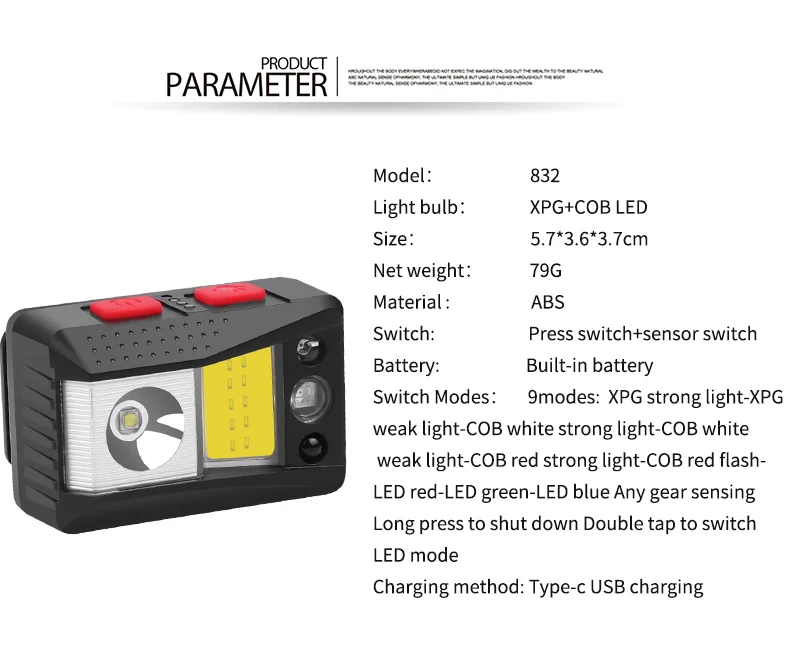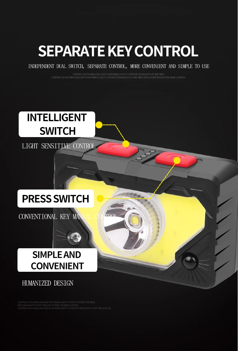 1. Индукционная фара на палец, когда ваша рука находится рядом с фарой в пределах 15 см, фара включится, когда вы оставите фару пальцем, она будет выключена.