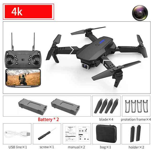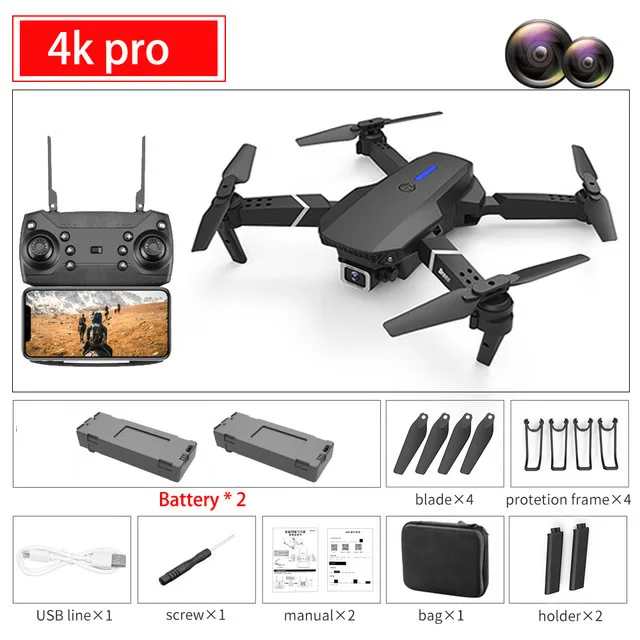 Квадрокоптер E88Pro, профессиональный Квадрокоптер с двойной камерой, широкоугольной головкой и дистанционным управлением, 2021