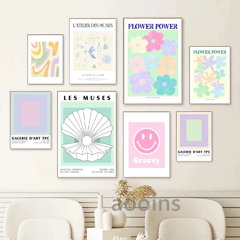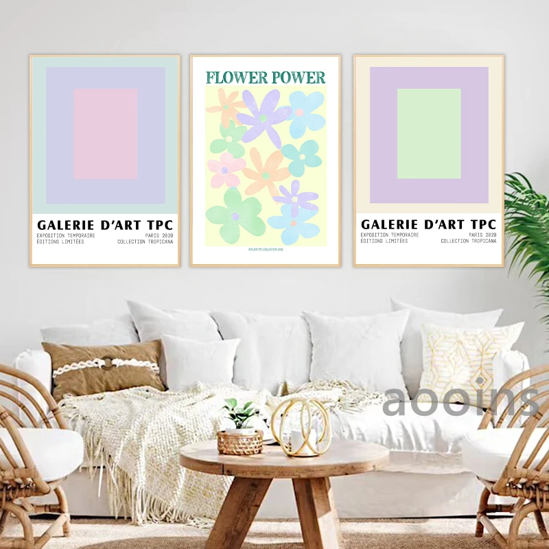 Современные плакаты в стиле среднего века с цветочным принтом, абстрактные пастельные цветные блоки, художественная живопись, настенные картины, декор для гостиной
