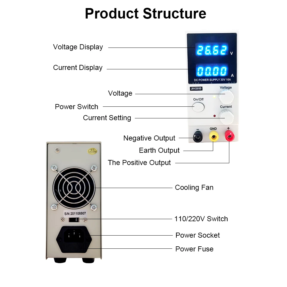 1. Высокоточный светодиодный цифровой дисплей, интуитивно понятный и четкий.2,6 см Умный вентилятор, отличная рассеивания тепла, эффективно продлить срок службы вентилятора и уменьшить шум.3. Использование передовых технологий для эффективного снижения веса мощности и удобства мобильной мощности.4. Различные защиты, ограничение тока (OCP), защита от перегрева (OTP), защита от перегрева (OPP).5. Пластиковые панели, более красивые, напряжение, ток, грубая и тонкая ручка регулировки, чтобы установить настройки, чтобы быть более точным.