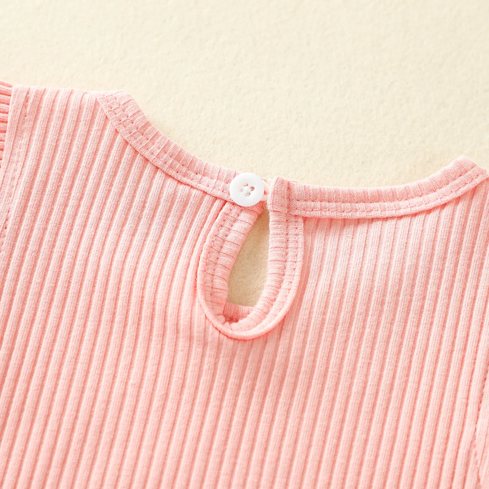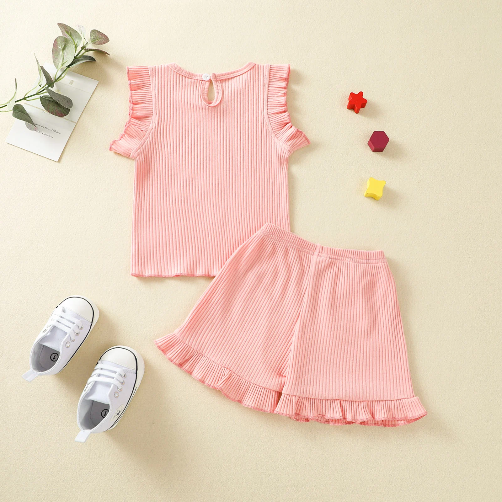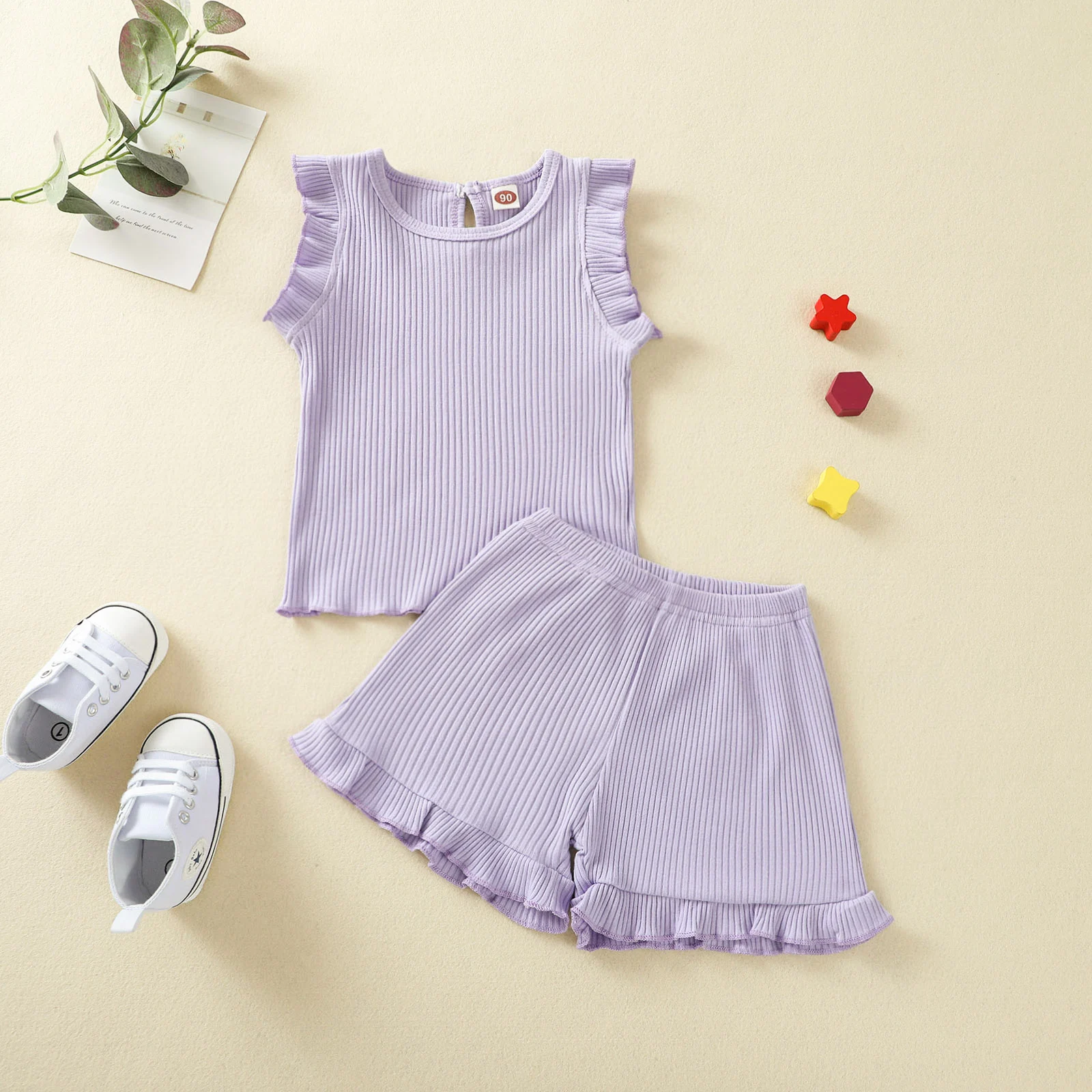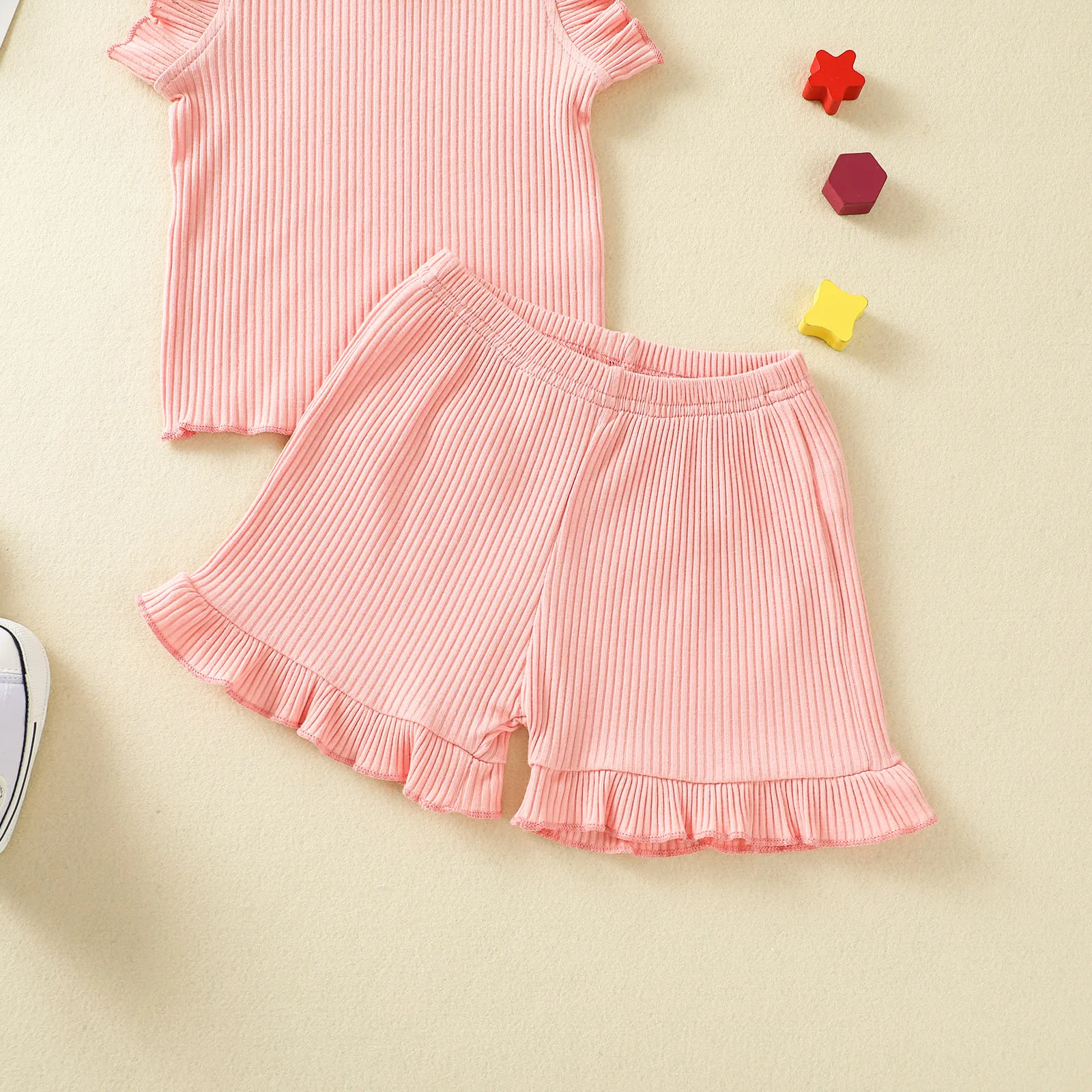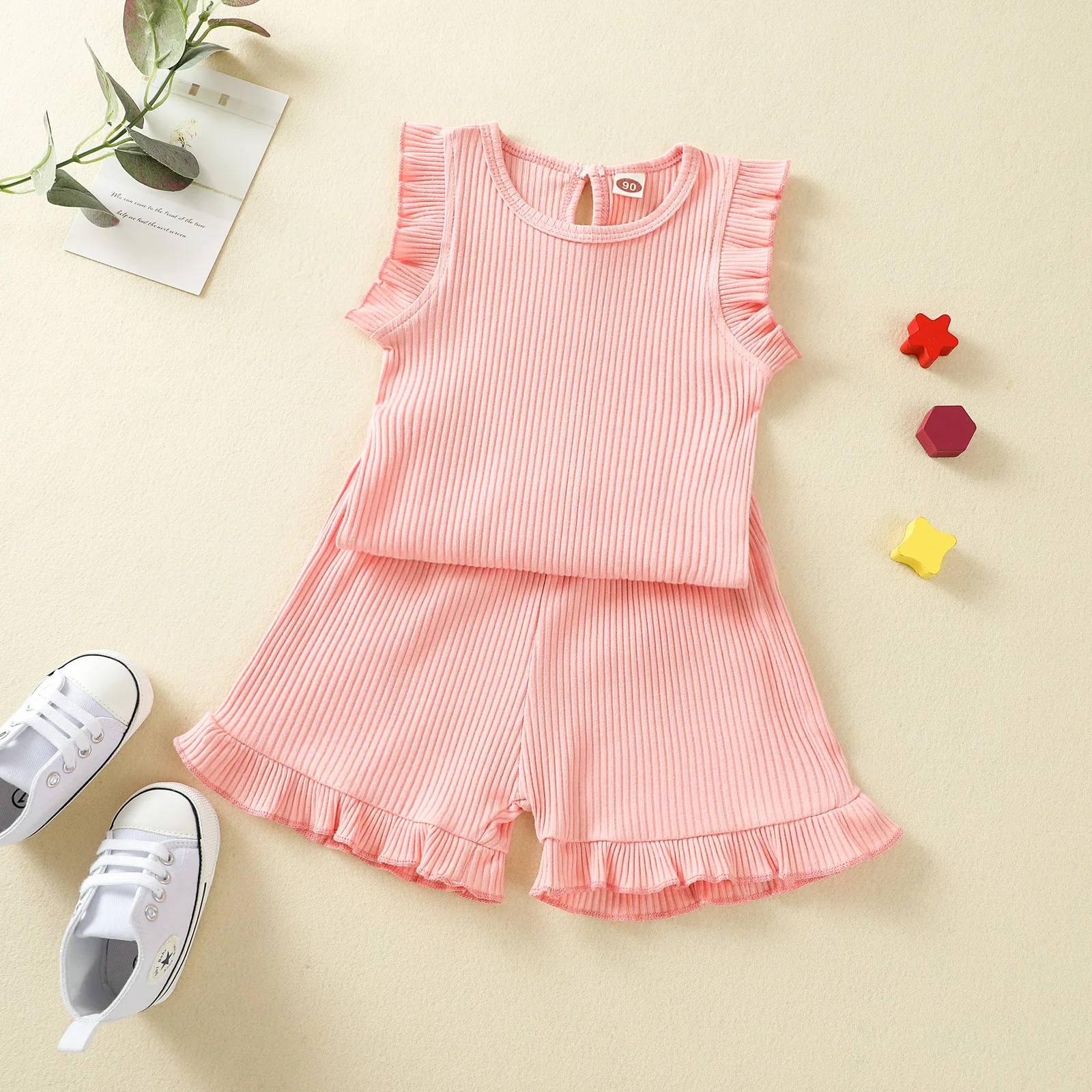 Комплект летней детской одежды в рубчик, топ с коротким рукавом + штаны для девочек, повседневная одежда для малышей от 12 месяцев до 6 лет, 2021
