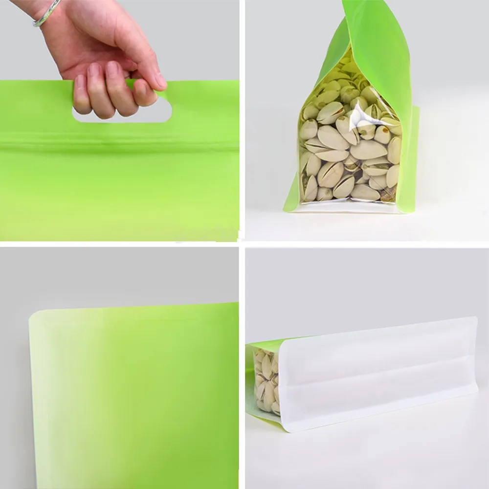 50 шт.лот стоячий многоразовый пакет на молнии для хранения продуктов с ручкой пластиковые мешочки на молнии Боковой ластовицы упаковочный пакет