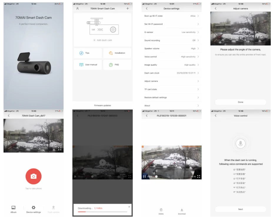 Благодаря встроенному Wi-Fi модулю вы сможете управлять настройками видеорегистратора и просматривать записанные ролики на экране вашего смартфона, используя удобное приложение для Android и iOS. Также вы сможете скачивать ролики с видеорегистратора в память вашего мобильного устройства.