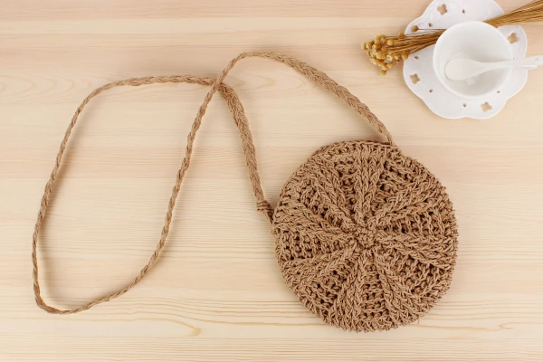 Круглая пляжная сумка из рафии, винтажная плетеная сумочка ручной р...