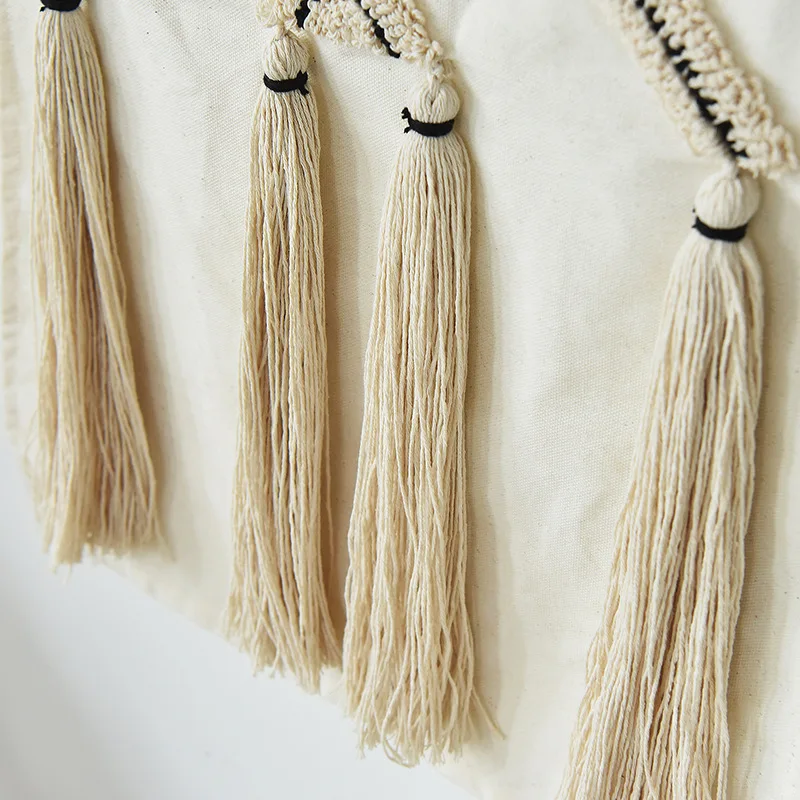 Коричневая бежевая наволочка ручной работы с геометрической вышивкой с кисточками для домашнего декора наволочка для подушки 45x45 см наволочка для дивана наволочка для подушки