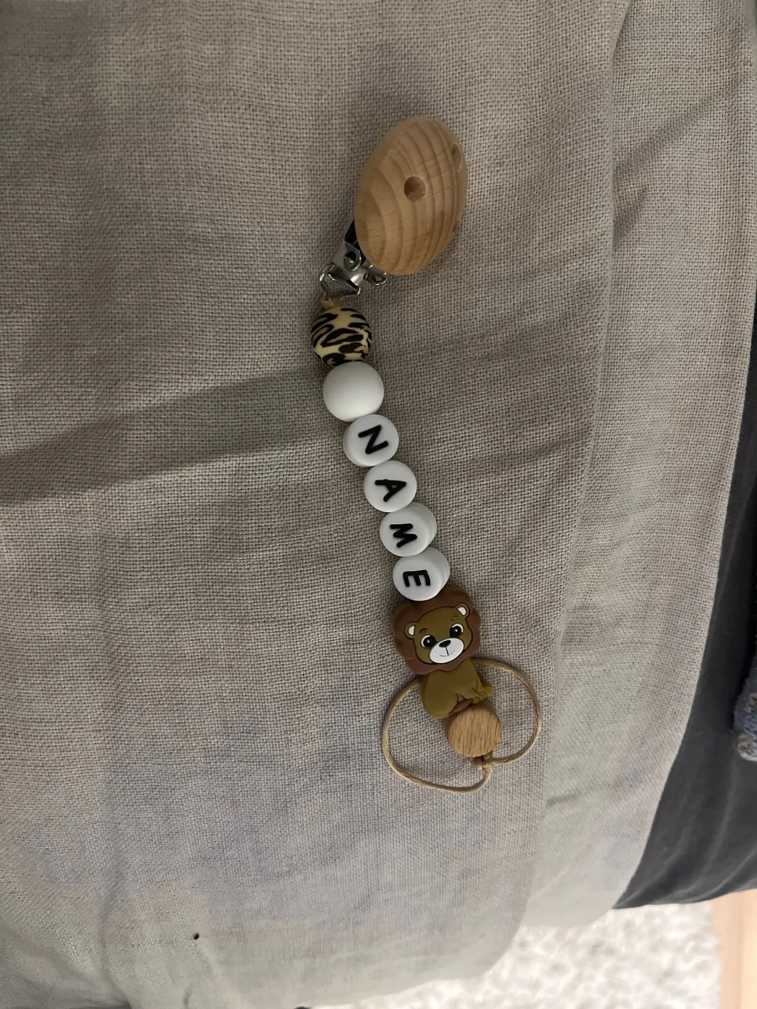 Цепочка-грызунок для соски, деревянная, с именем на заказ, с пандой...
