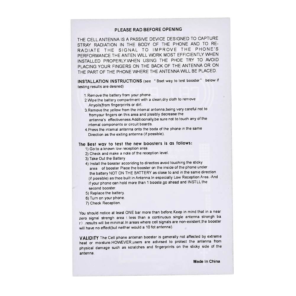 Эти бустеры используются не только для сотовых телефонов, но и для увеличения приема двухсторонних радиоприемников, PDA, Walkie Talkies, Beepers и даже беспроводных телефонов в вашем доме.Улучшенное поколение X PlusSP-1Revised Edition антенна для сотового телефонаНаше новое поколение X Plus, обновленное издание, антенные бустеры для мобильных телефонов лучше, чем когда-либо! Усилитель антенны теперь прочнее и поставляется в блестящем золотом цвете. Он также поставляется с инструкциями по установке и тестированию вашей новой антенны booste.Преимущества:1) огромное влияние-как наличие 4 футовой антенны на вашем мобильном телефоне.2) Улучшает прием, уменьшает статику в лодках, лифтах, автомобилях, зданиях, туннелях и горах.3) работает на любых аналоговых, цифровых и трехдиапазонных телефонах.4) Устраняет сброшенные вызовы.5) легко установить, просто очистить и приклеить к внутренней стороне отсека батареи.6) Каждый бустер индивидуально упакован и готов к отправке в подарок или к перепродаже!"Установка проста ..!1. Откройте свой мобильный телефон и удалите аккумулятор сотового телефона2. Удалите клейкое уплотнение из бустерной антенны3. Вставьте антенну усилителя внутри телефона, как можно ближе к тому месту, где расположена антенна телефона (Проверьте руководство вашего сотового телефона для этого.4. Поместите аккумулятор телефона обратно, закройте и включитеУпаковочный лист: