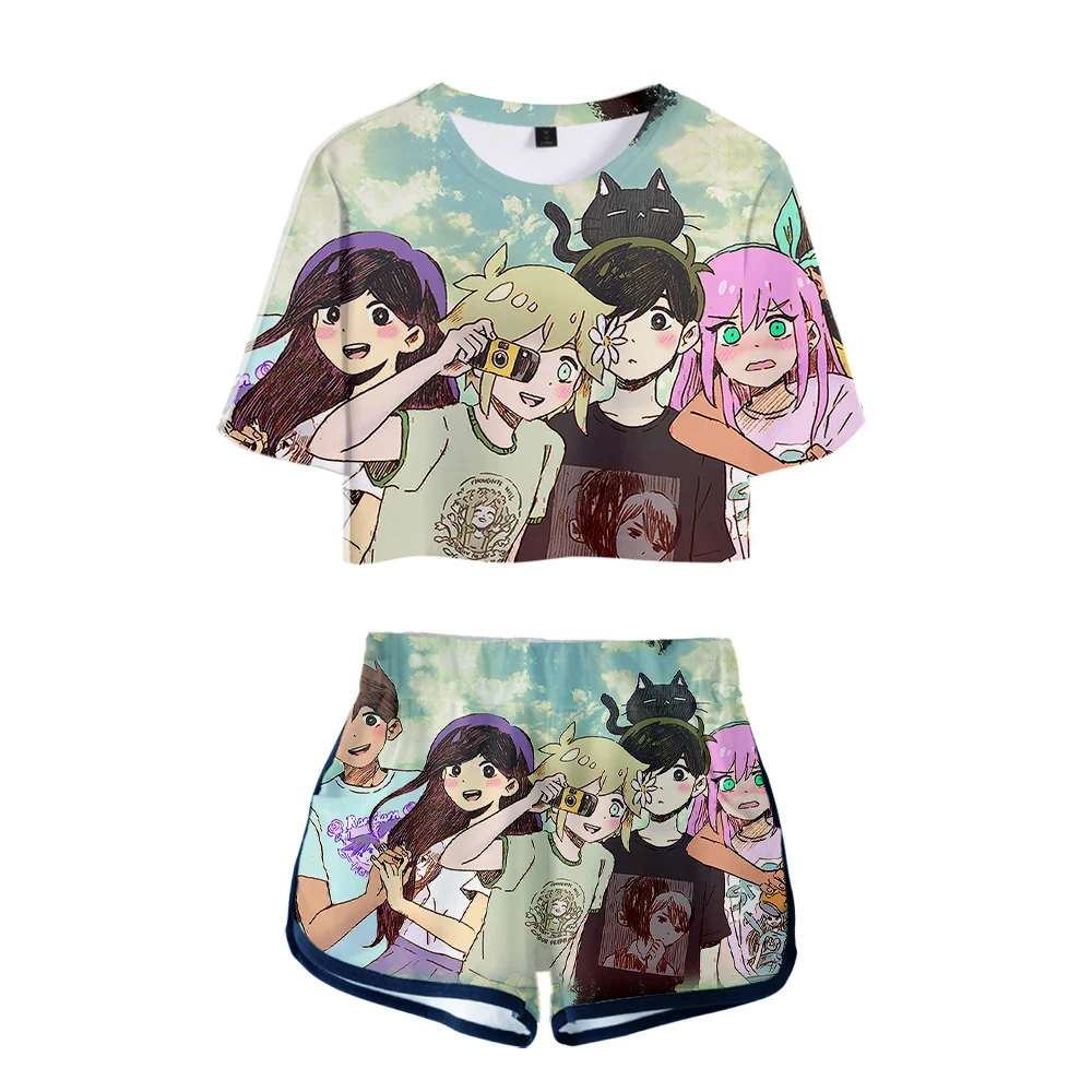 Пуловер оверсайз в стиле Харадзюку для мужчин и женщин, кофта и пальто в стиле Omori 3D, летние комплекты из двух предметов для мужчин и женщин