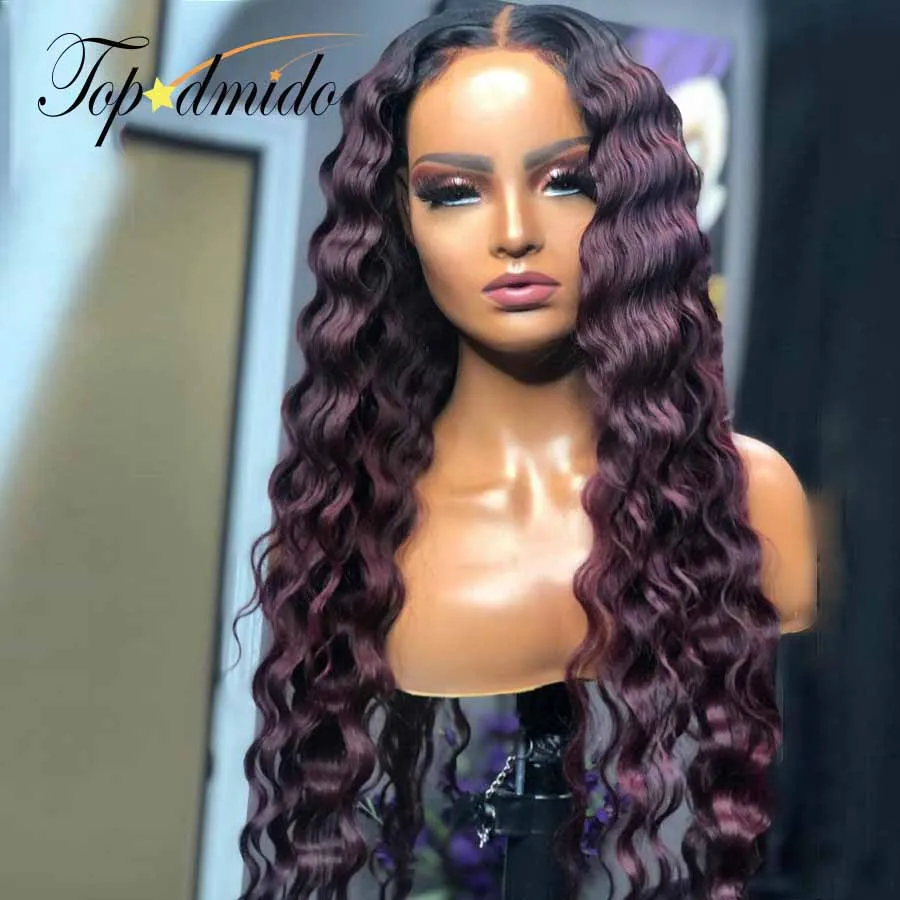 TOPODMIDO Deep Wave 13x 4, передние человеческие волосы со шнуровкой, искусственные волосы с эффектом омбре 99J, бразильские волосы без повреждений, передние парики на шнуровке для женщин