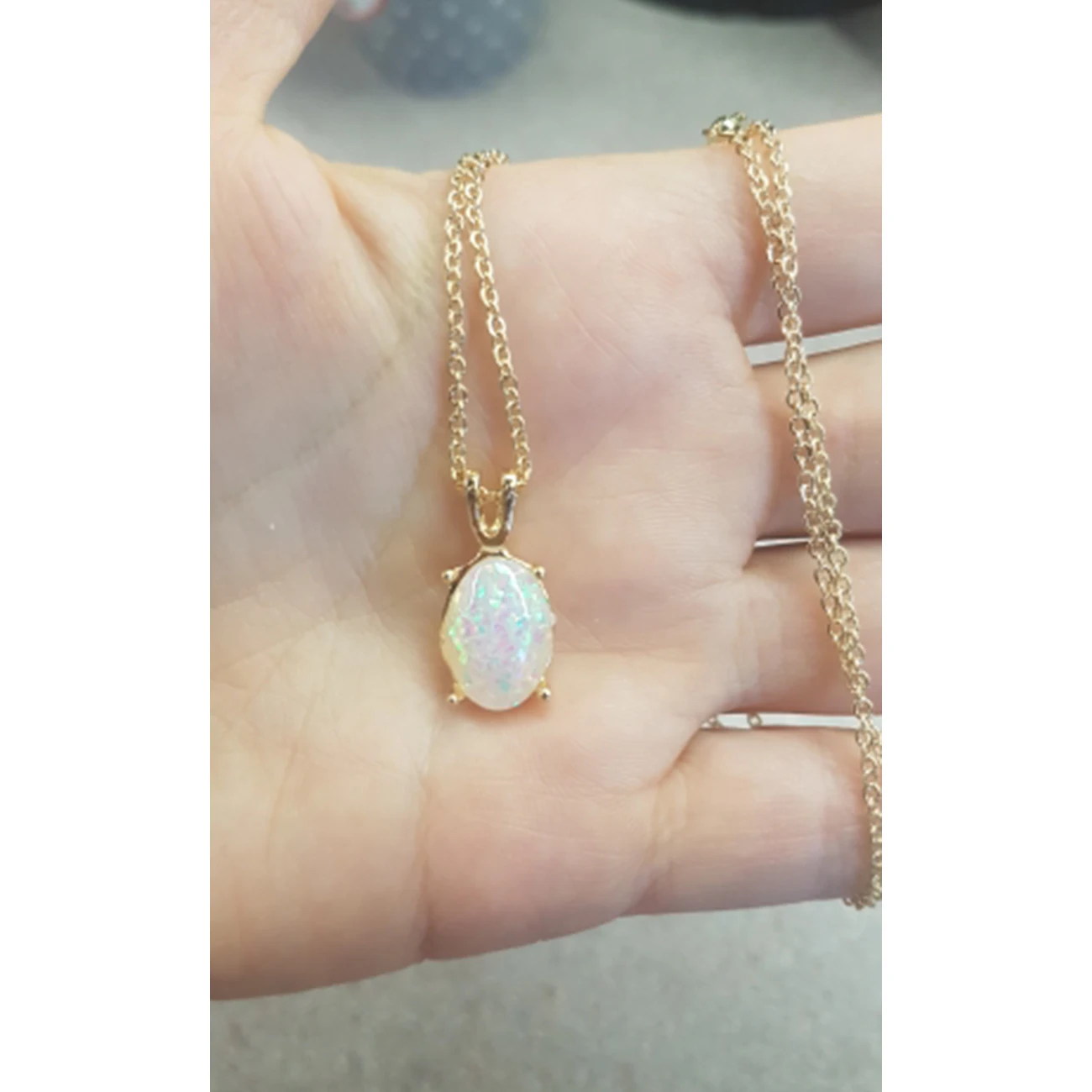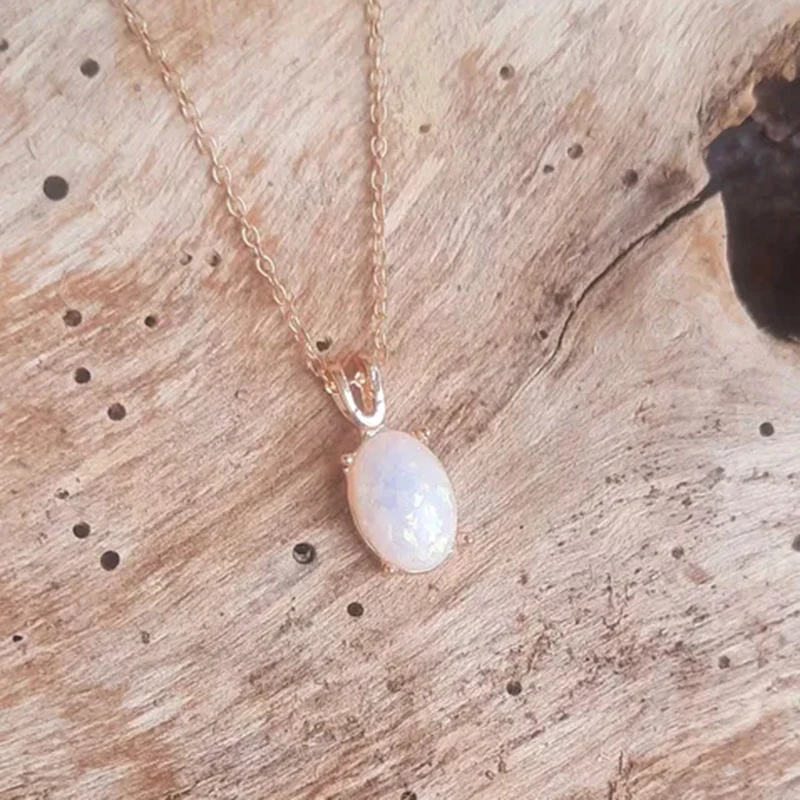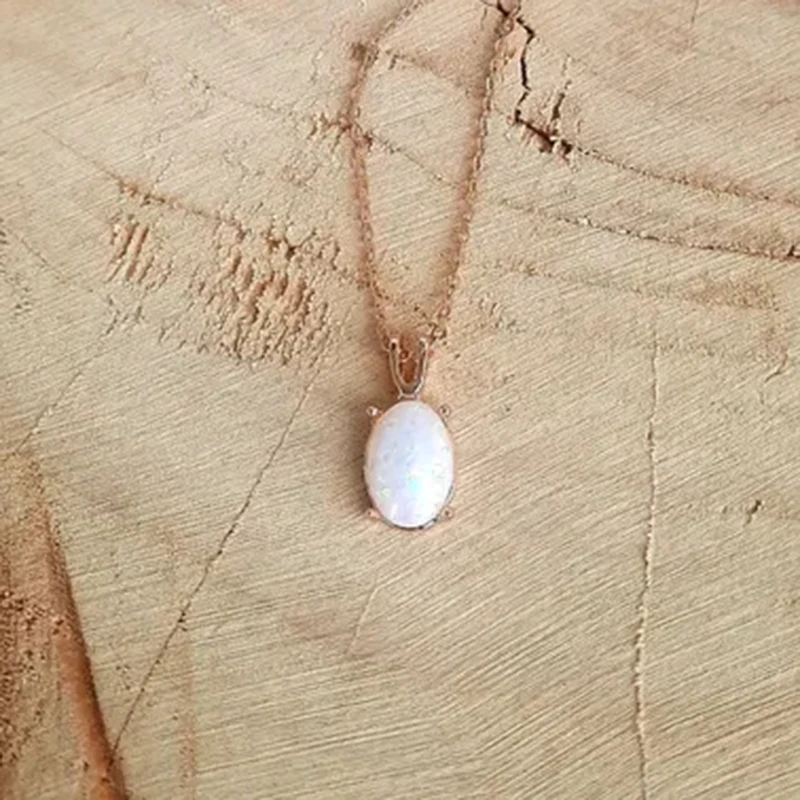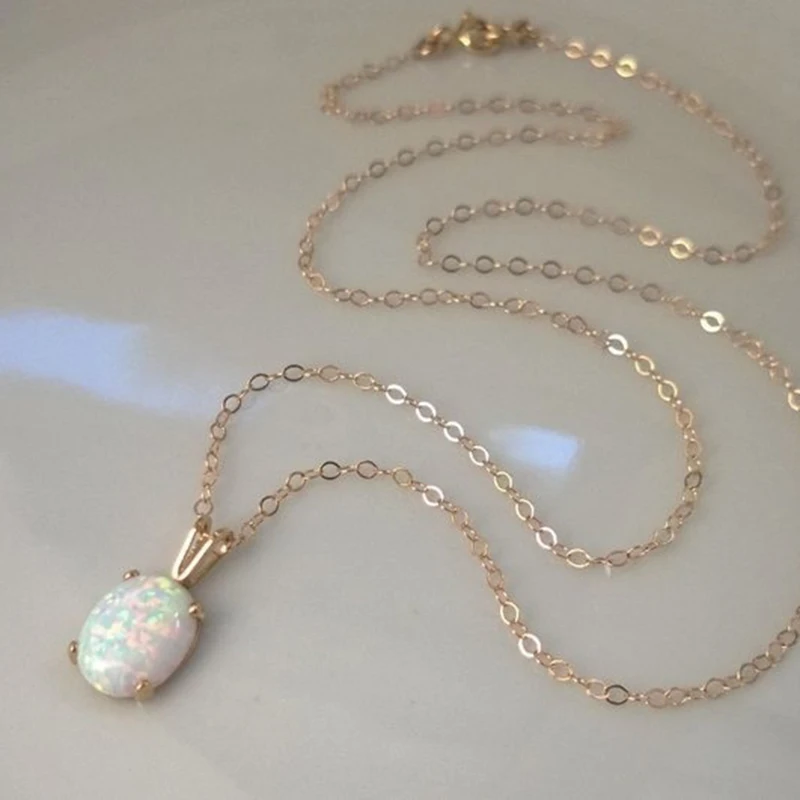 Ожерелье женское в богемном стиле, овальный кулон с имитацией опала, цвет белыйсиний, Гламурное Ювелирное Украшение для вечеринки, помолвки, свадьбы