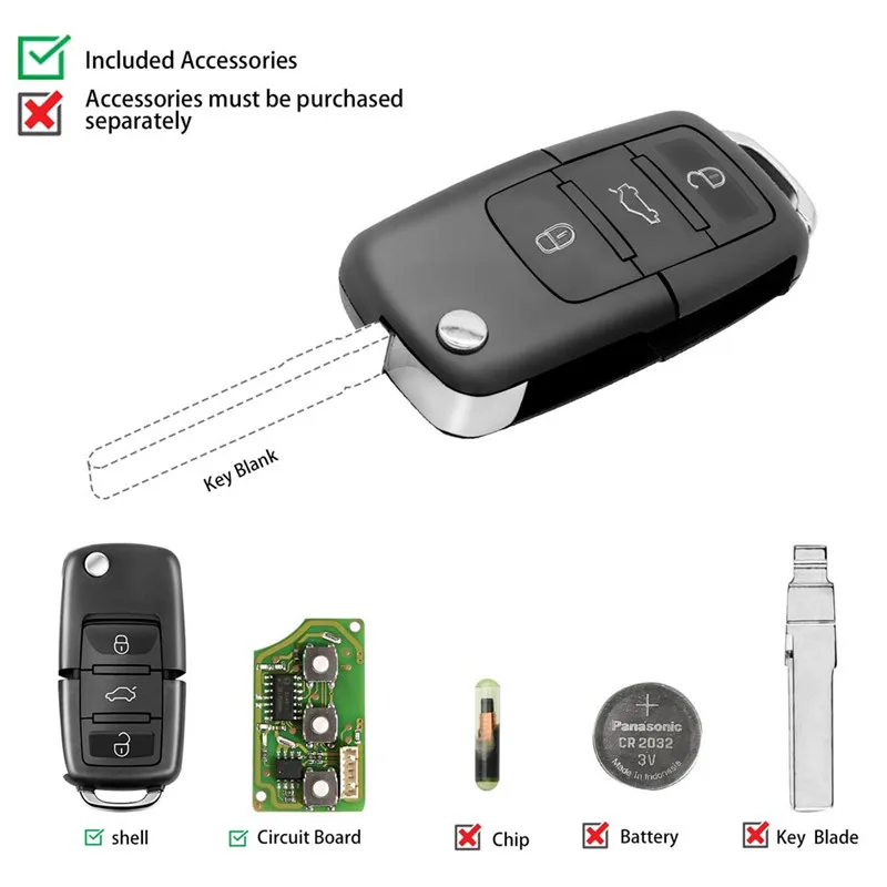 Пульт дистанционного управления Xhorse XKB501EN для VW B5 Flip, 3 к...