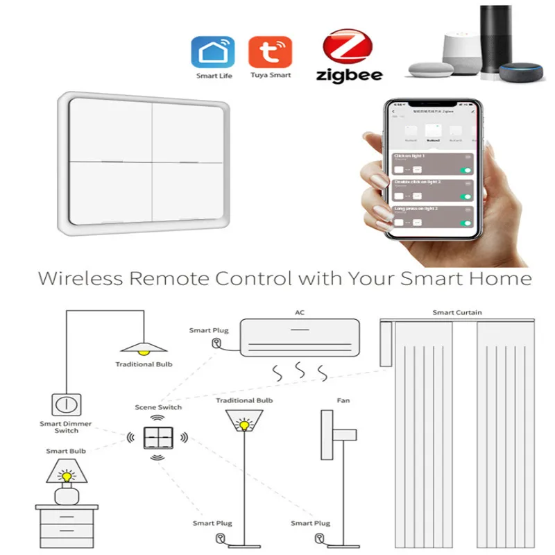 Tuya Zigbee 4 Gang Беспроводной 12-сцена кнопка включения Батарея контроллер с приводом от автоматический переключатель работы с Alexa Google Home