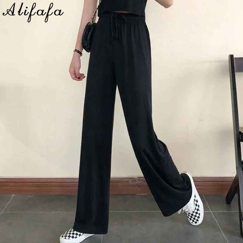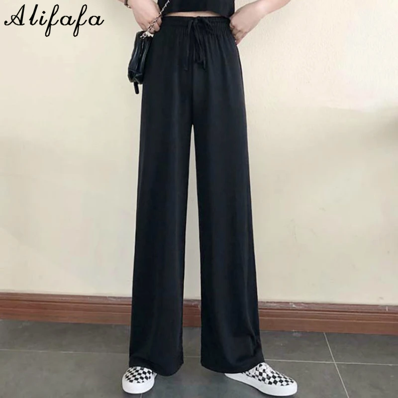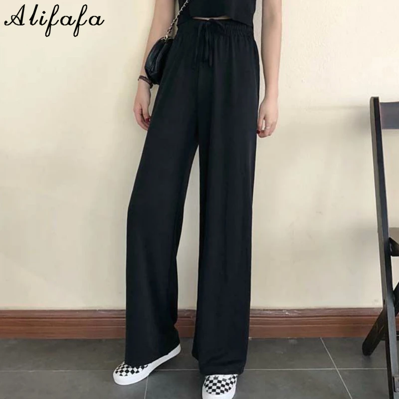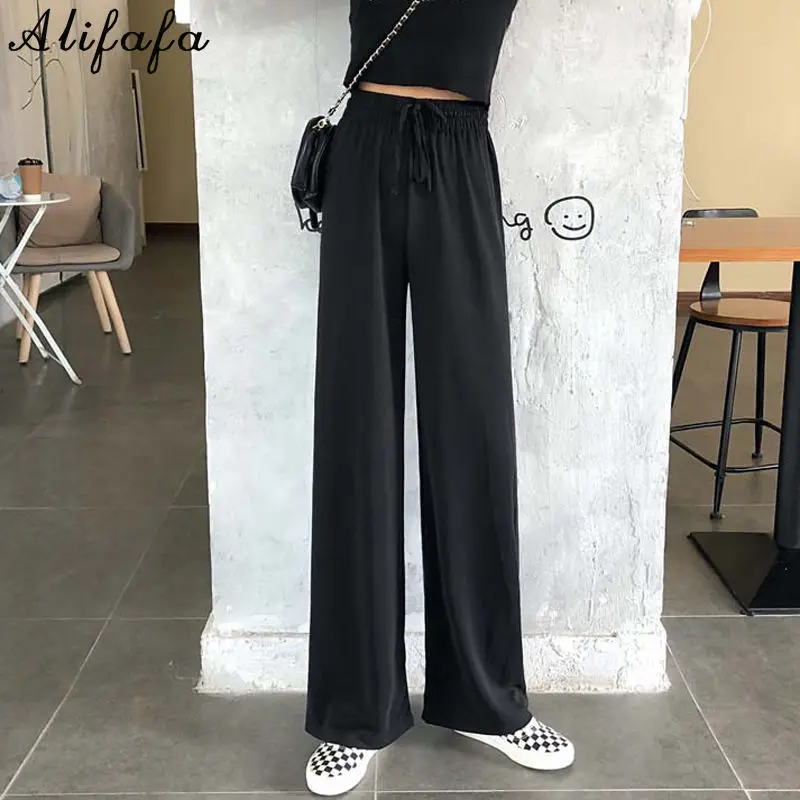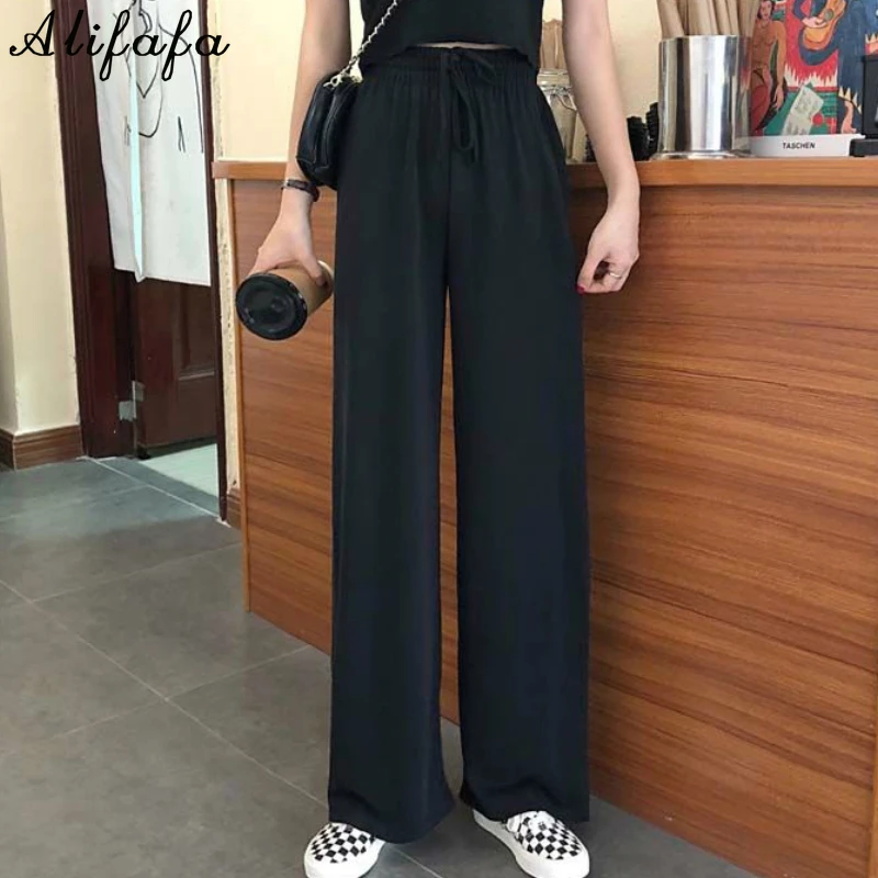 Брюки женские весенние, черные, широкие, на шнуровке, с высокой талией, в Корейском стиле, свободные, штаны для ежедневной носки