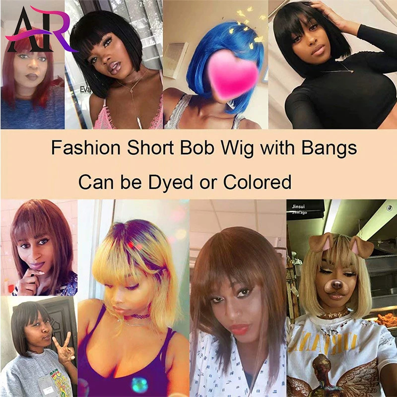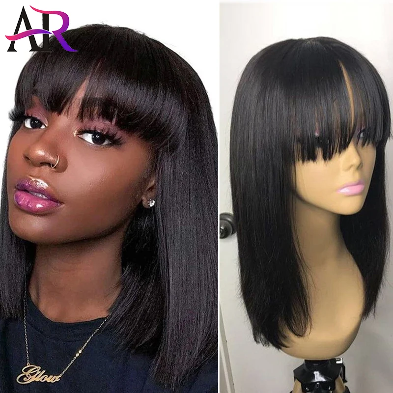 Парики A R из прямых человеческих волос, с челкой, бразильские натуральные волосы Реми для чернокожих женщин, без сетки, полностью машинное изготовление