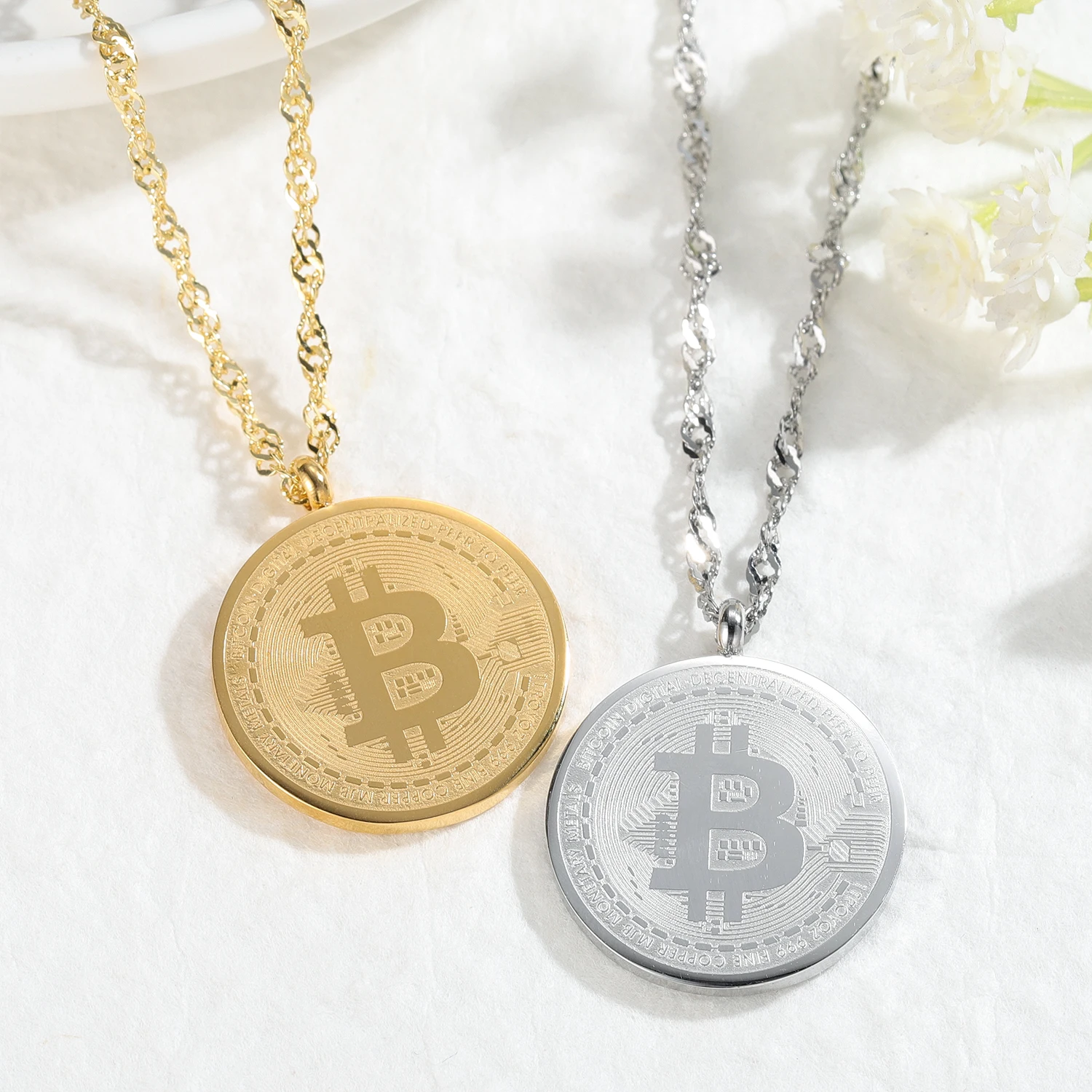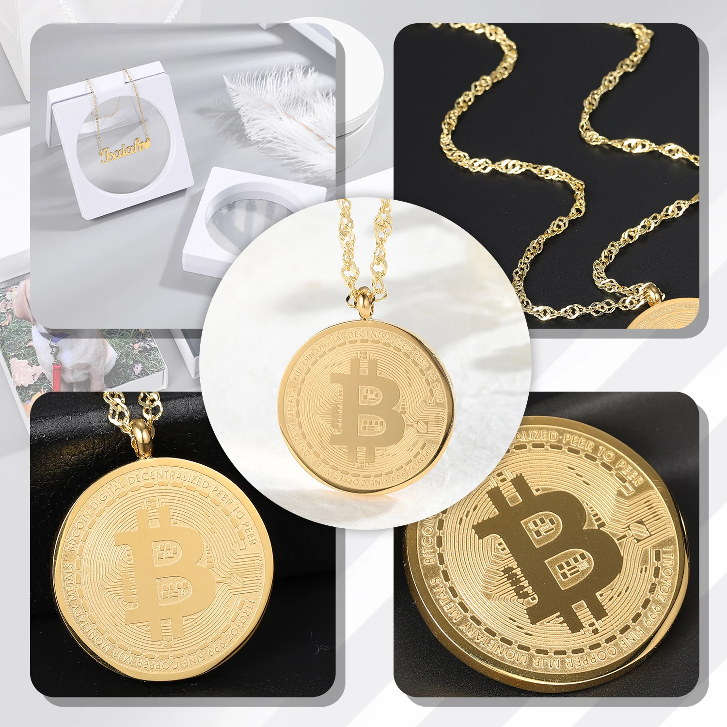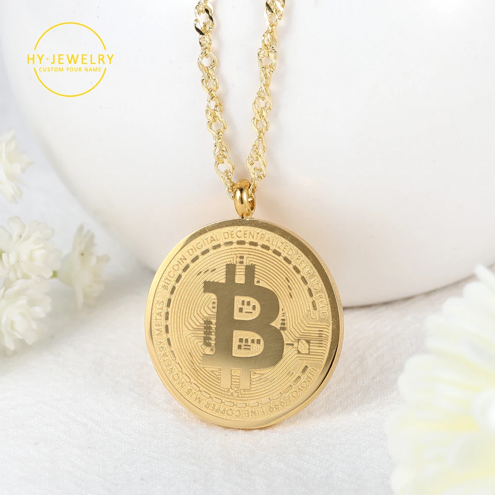 Золотой Биткоин кулон ожерелье для мужчин на заказ, 18k, позолота, нержавеющая сталь, ювелирные изделия памятная монета кулон ювелирные изделия из жемчуга для женщин