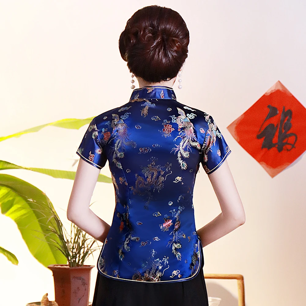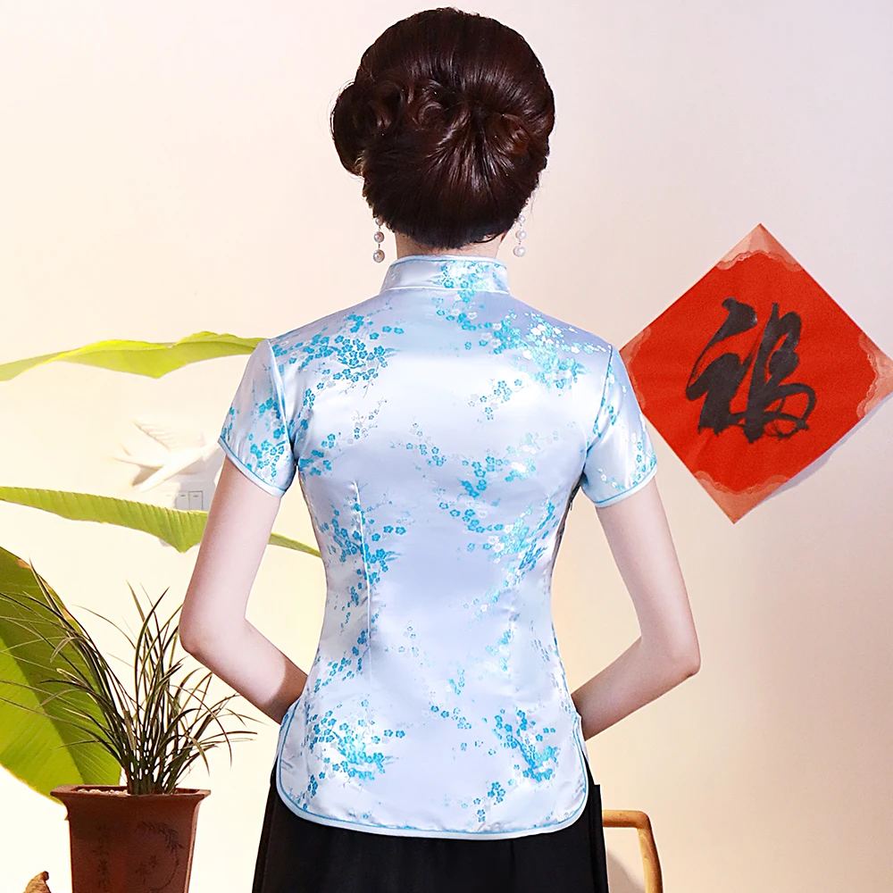 Женская Традиционная рубашка с китайским воротником 3XL 4XL, китайская женская рубашка, новая одежда для выступлений, топ с синими цветами