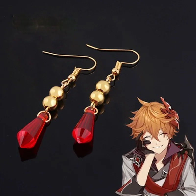 Genshin Impact тарталья Косплей красные серьги клипсы кулон ювелирн...