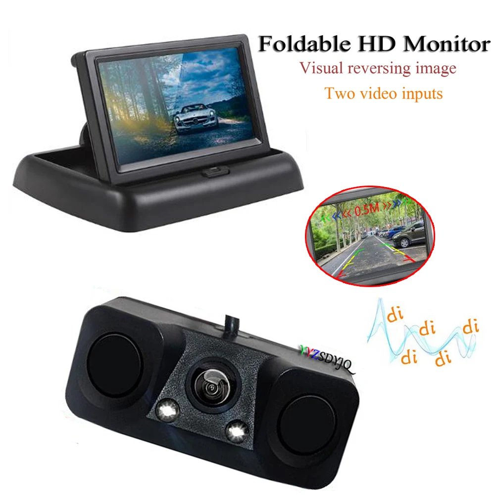 Радар заднего ход, парковочный Сенсор детектор Камера 2 светодиодный светильник Ночное видение с 4,3 дюймов Автомобильный монитор TFT ЖК-дисплей для Парковочные системы