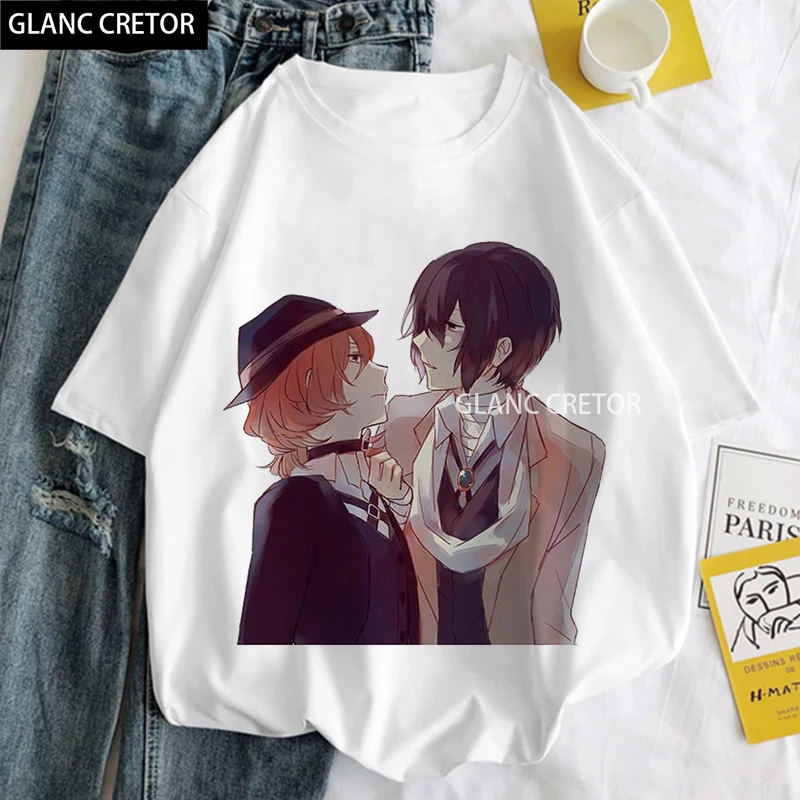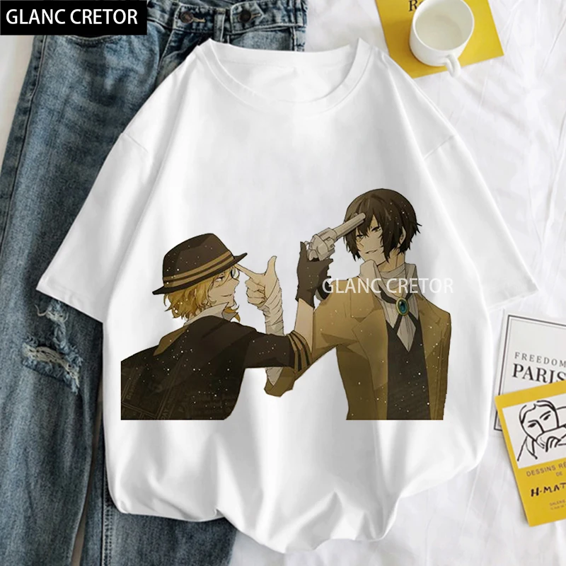 Футболка Bungo с графическим принтом бродячих собак, женский топ в стиле Харадзюку, белая футболка, Повседневная футболка, футболка в японском стиле аниме Y2k, женская футболка