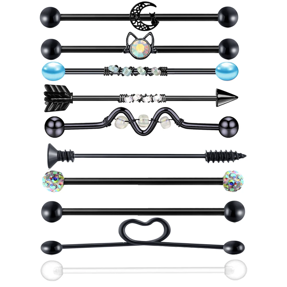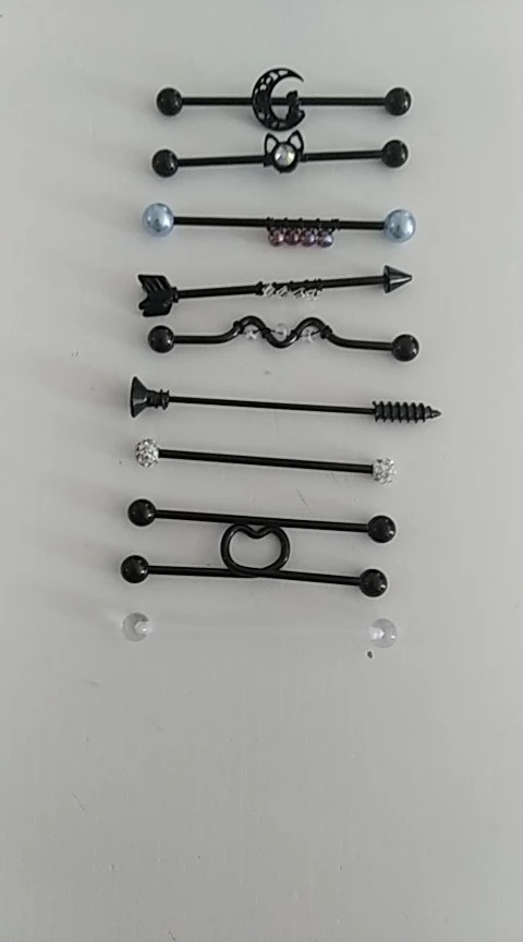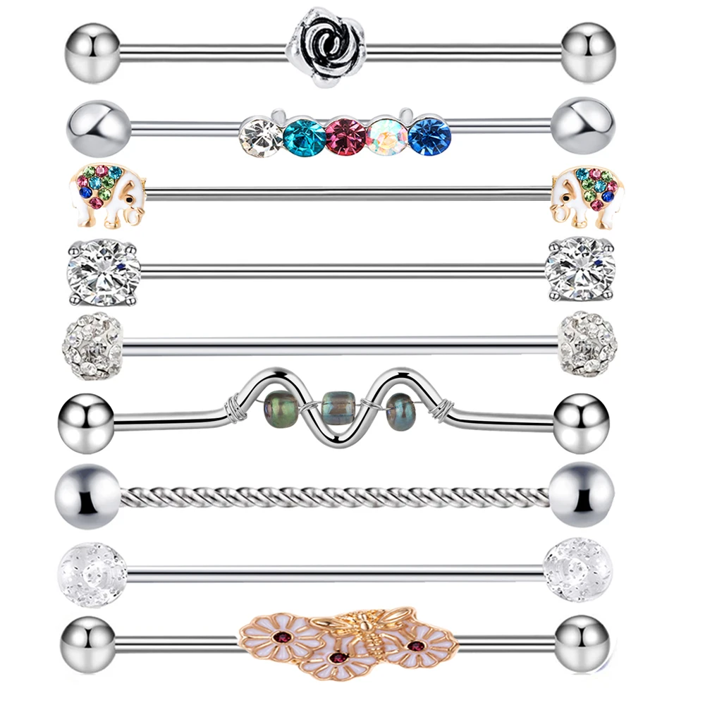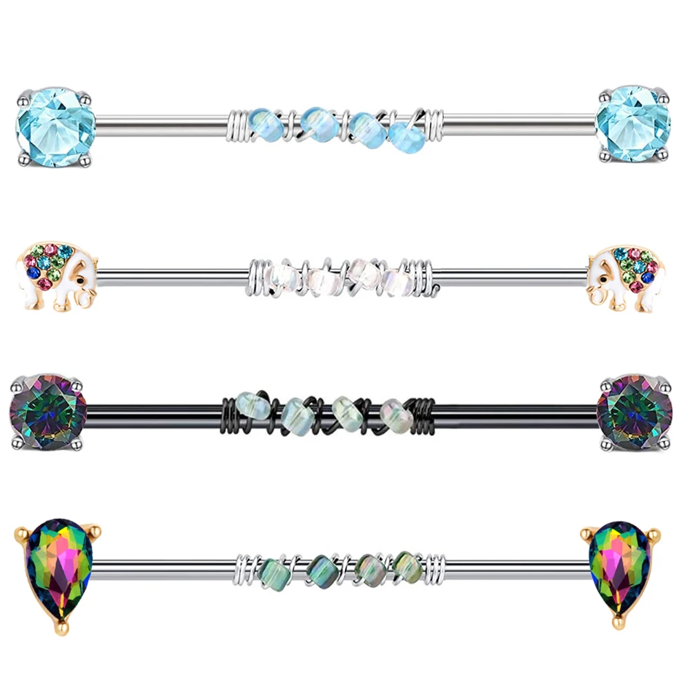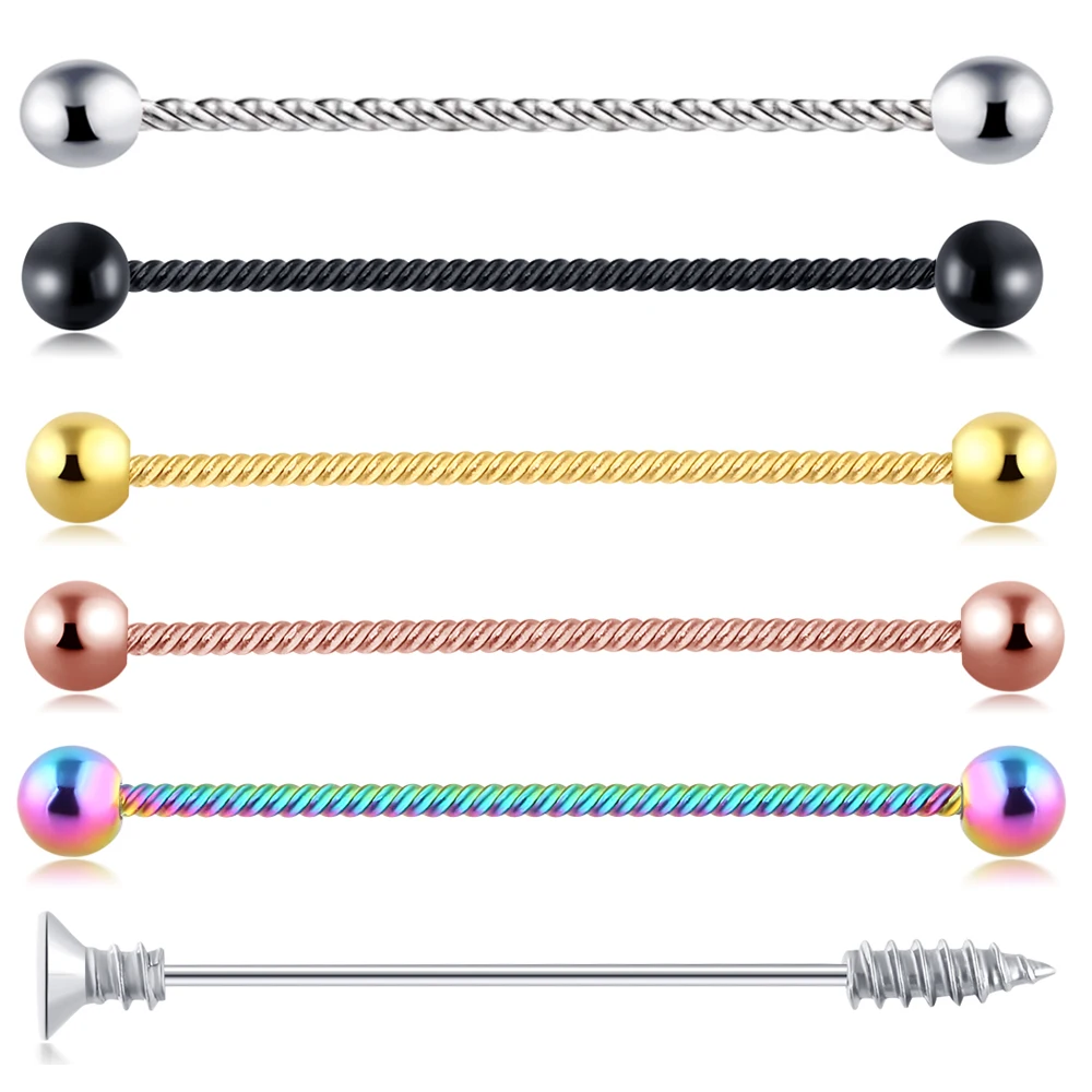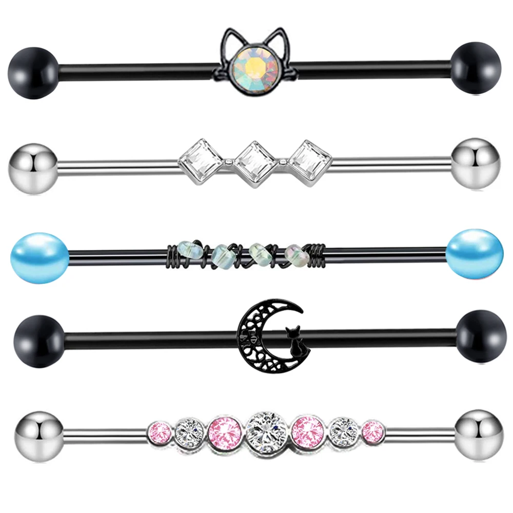 14 г Промышленные Штанги для пирсинга ювелирные изделия из хирургической стали CZ мраморный жемчуг стиль для женщин и мужчин серьги, Надеваемые На Ушной Хрящ Пирсинг тела
