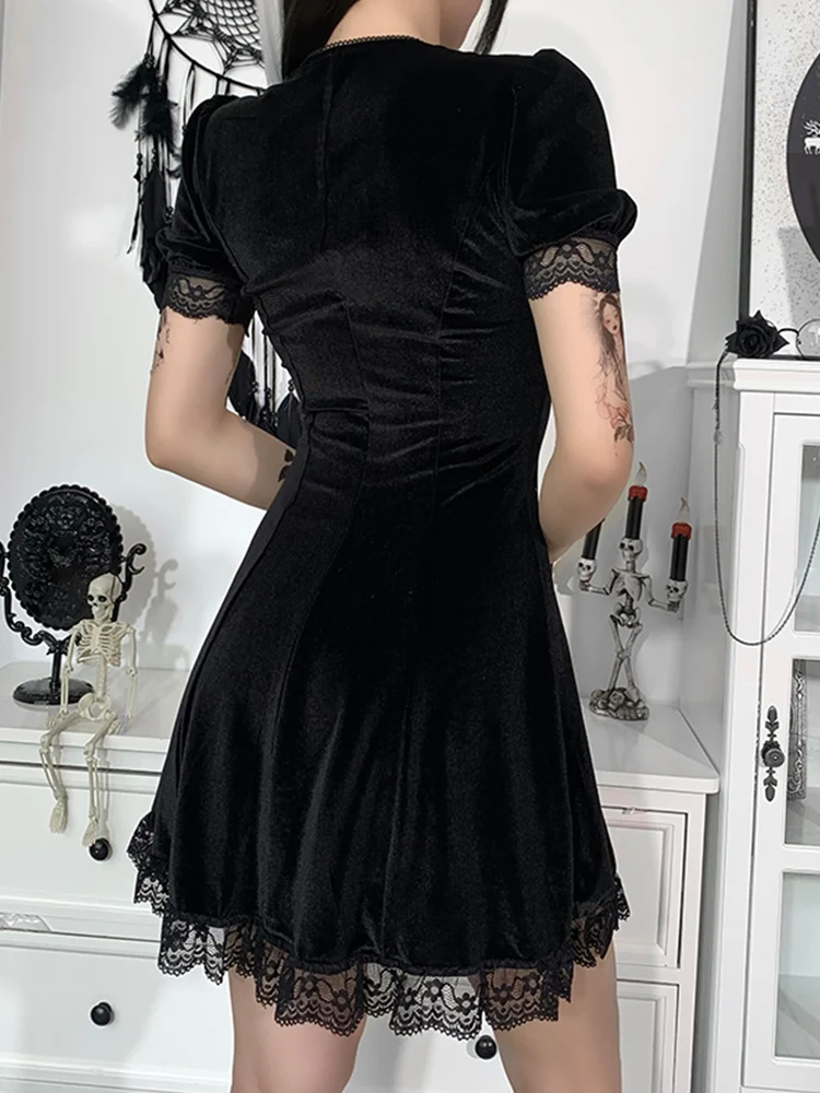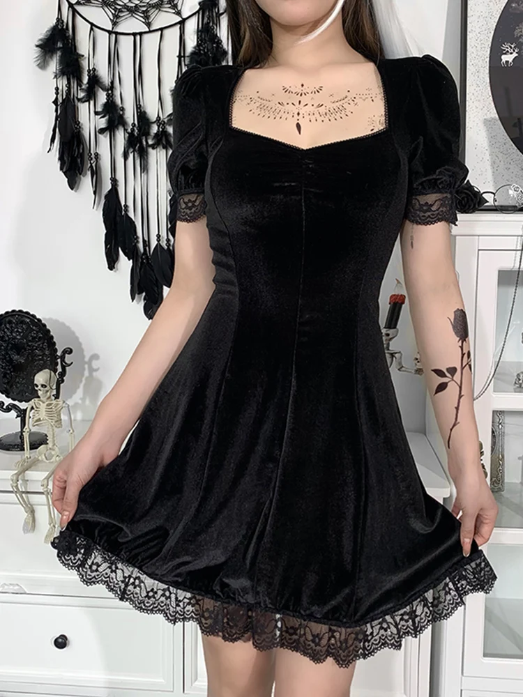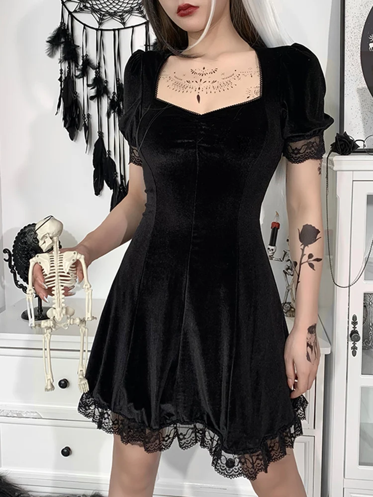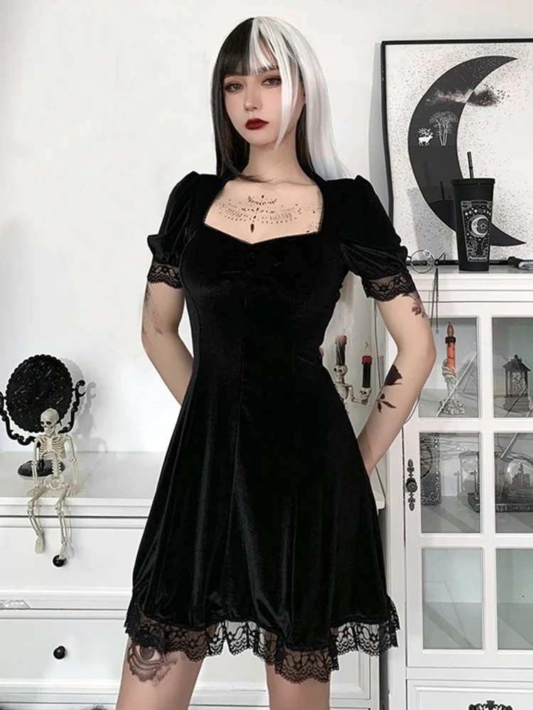 Женское бархатное платье в стиле Харадзюку InsDoit