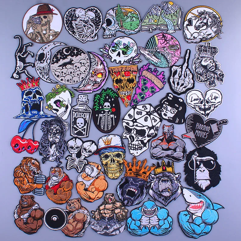 Нашивка в стиле панк, искусственное железо на нашивках для одежды, искусственная Аппликация черепа, вышитая на одежде, значок для мышц
