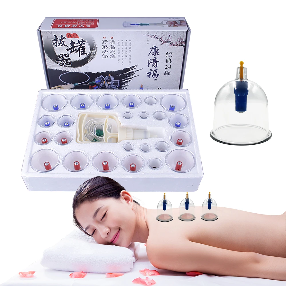 Набор банок для вакуумной терапии, 24 толстые банки, присоски для похудения, антицеллюлитный массажер, банки для тела, набор для лица