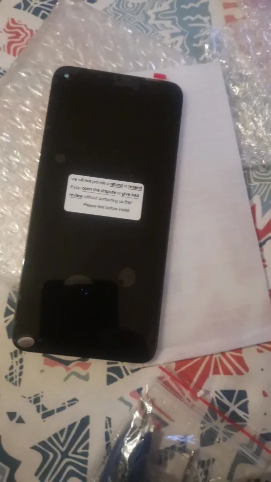 Экран рабочий, тач отзывчивый. Вроде новый, следов эксплуатации не заметил. Оригинальный или нет хз. Артефактов не наблюдается. Прислали просто в пенопластовой коробке,а не в фирменной упаковке как на первом фото у продавца.