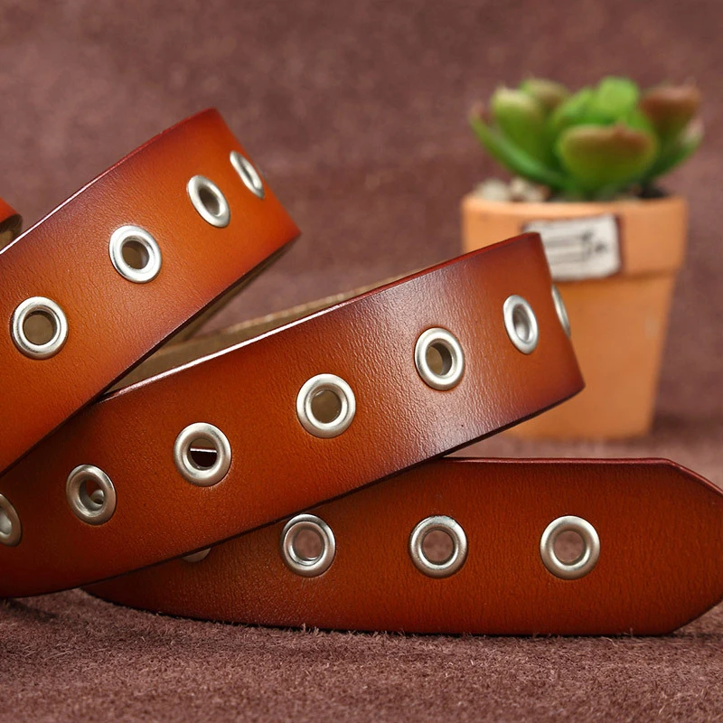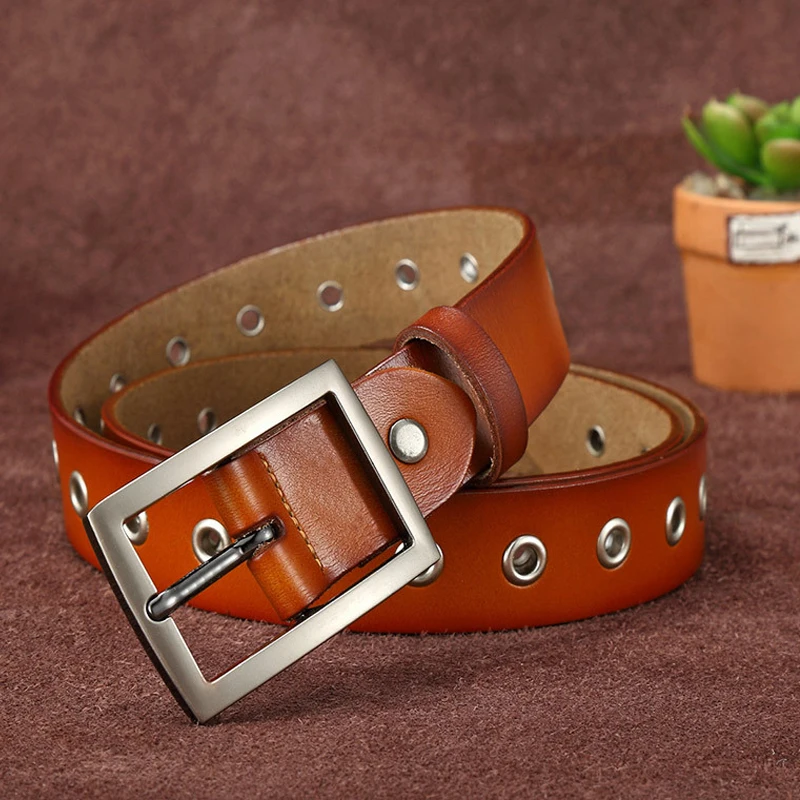 Женский ремень с заклепками MEDYLA, модный простой тонкий ремень из натуральной кожи в стиле панк, длинный модный ремень L08