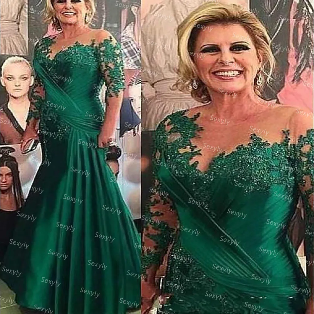 Женское платье-русалка, зеленое вечерние для матери невесты 2021 с длинным рукавом, кружевное платье с бисером для гостей свадьбы, вечернее платье