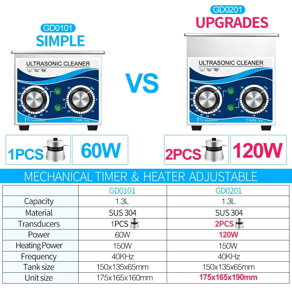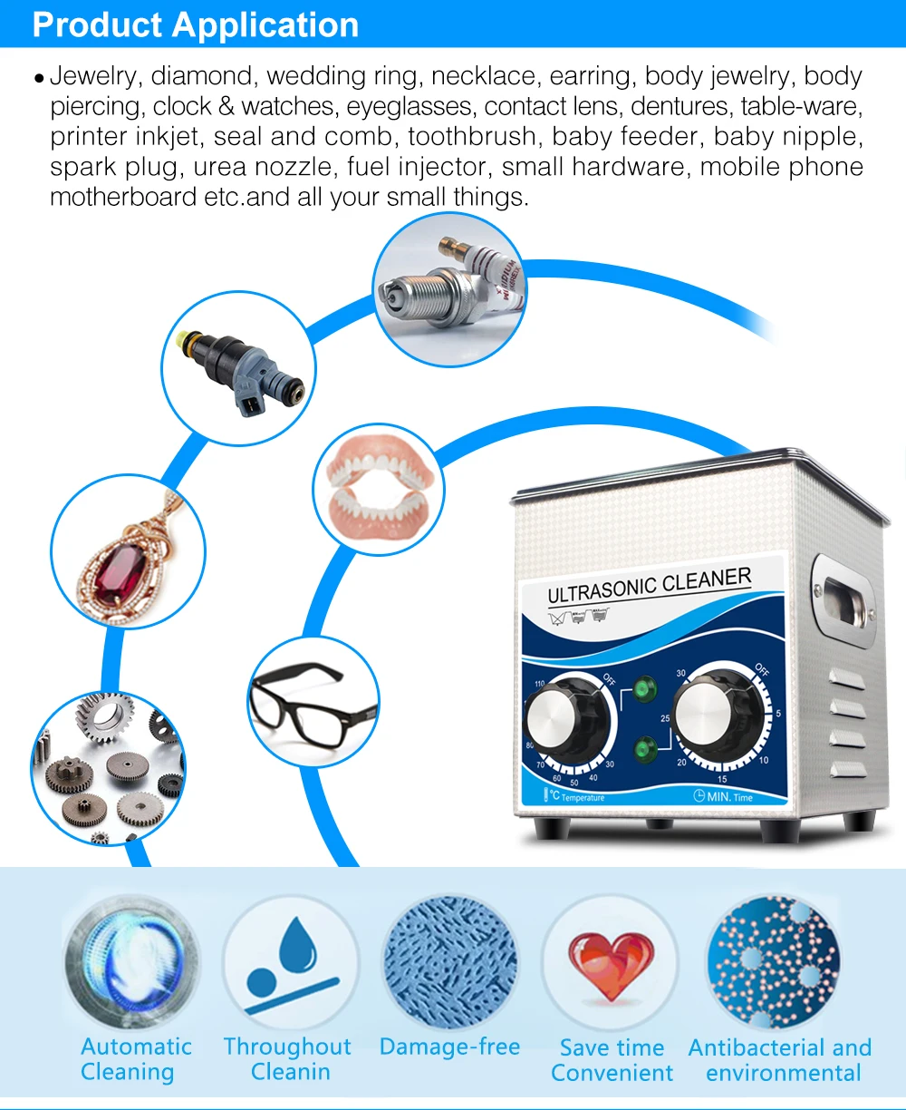 Ультразвуковой очиститель 1,3л с цифровым таймером, для ювелирных изделий, очков, часов, печатных плат