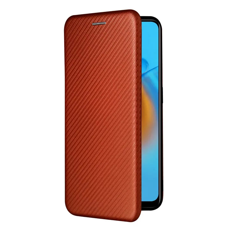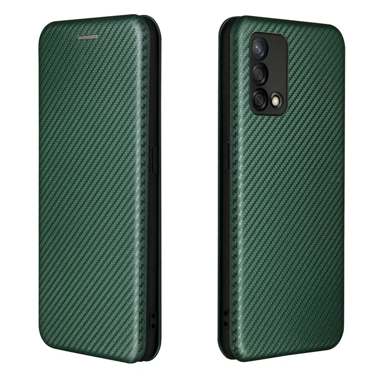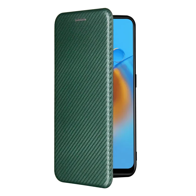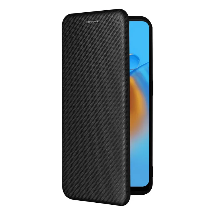 Чехол-книжка для OPPO A74, кожа, углеродное волокно, с отделением для карт