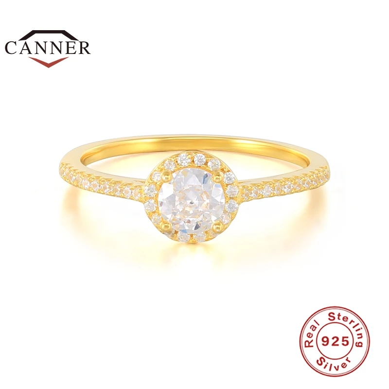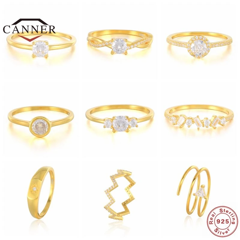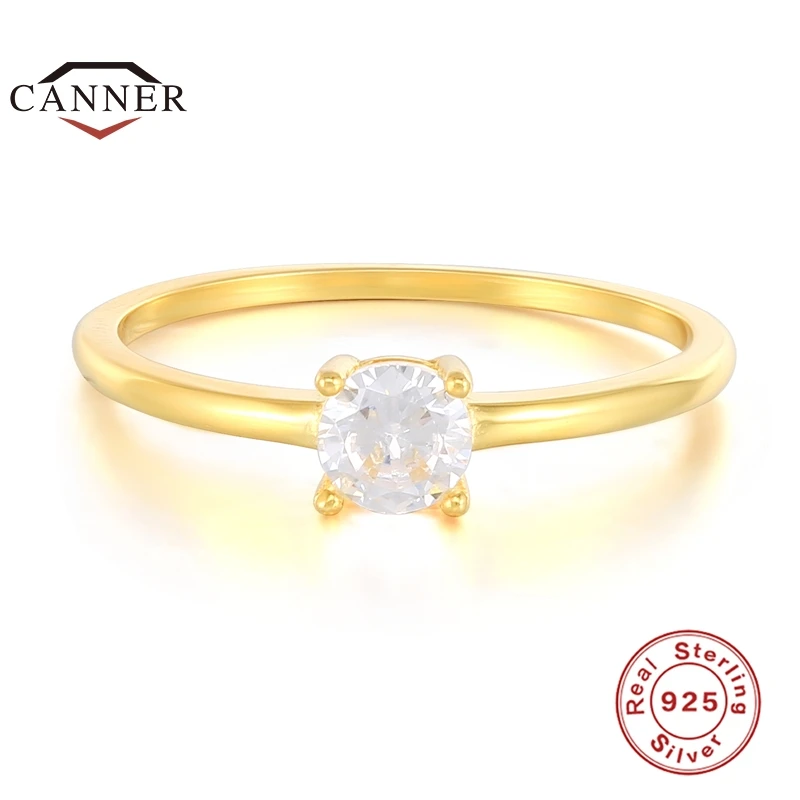 Женское кольцо с кристаллами циркония CANNER, кольцо из стерлингового серебра 100% пробы с бриллиантом на палец 925 пробы, свадебные подарки