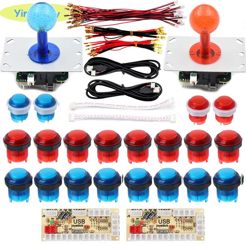 2 игроков джойстики комплект с светодиодный аркадный джойстик 5V светодиодный кнопки USB код пульт управления для игровой консоли