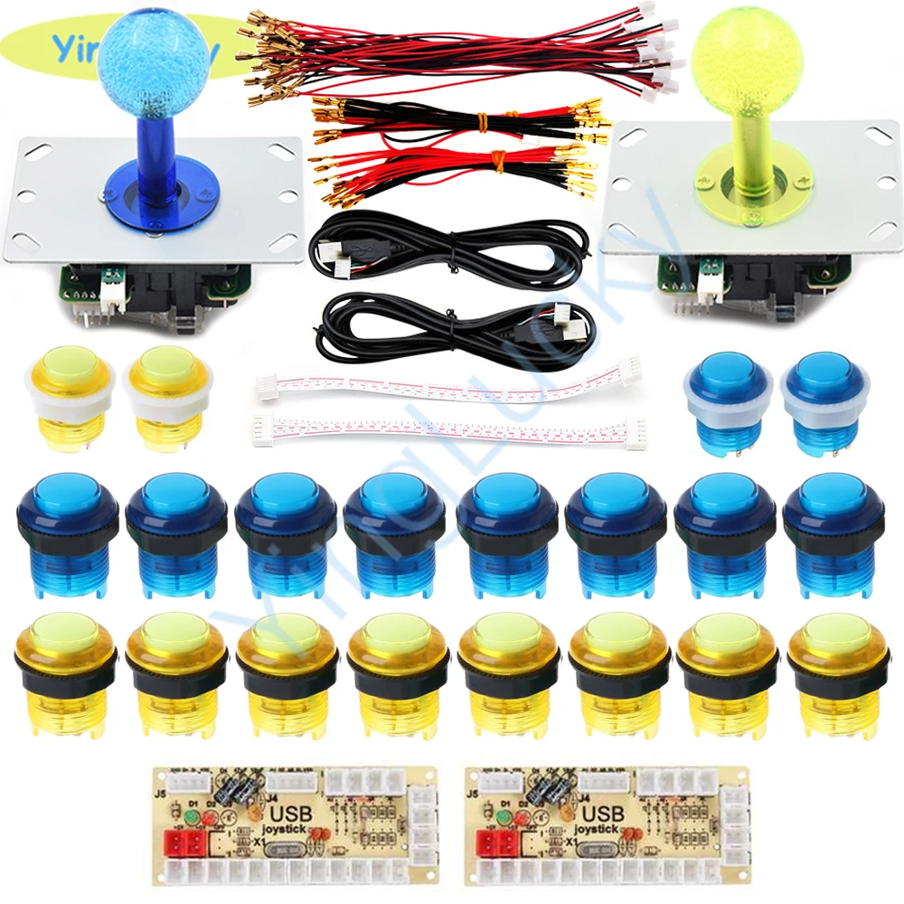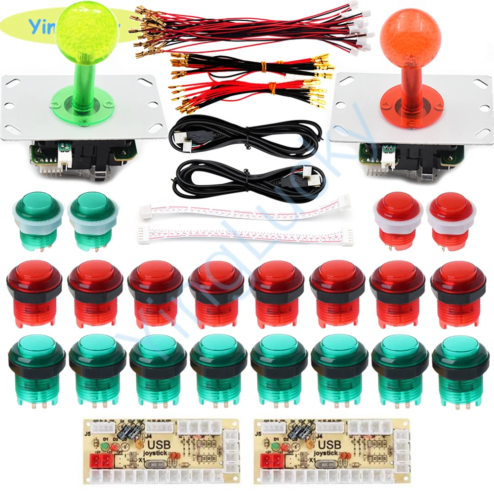 2 x Высококачественная плата кодировщика 2 x USB кабель 20 x Провода кабели для кнопок 2 x 5pin кабели для джойстика 2 x светодиодный джойстик 16x28 мм светодиодный кнопочный 4x24 мм светодиодный кнопки 2 x светодиодный кабель для кнопок