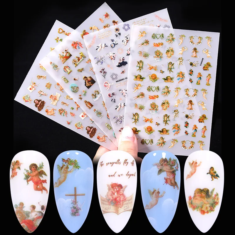 1 шт., 3D наклейки для ногтей с изображением ангела и цветов, перев...
