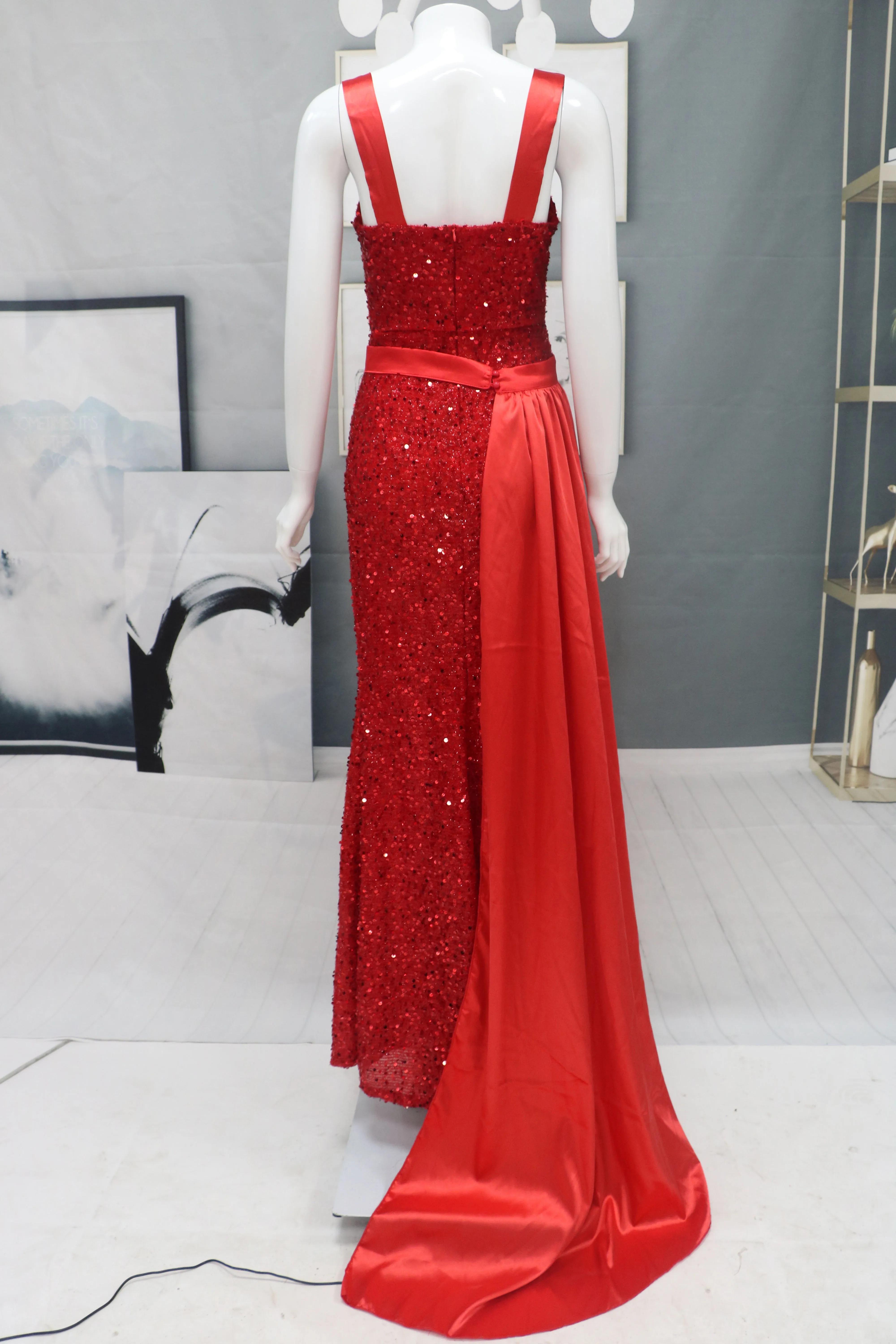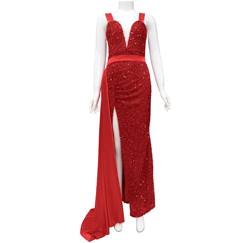 Женское платье с разрезом и блестками, повседневное красное платье с юбкой-годе, для торжественных случаев, лето 2021