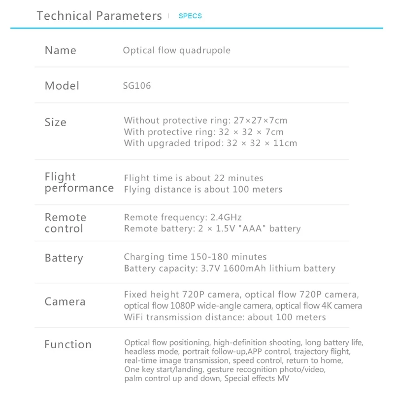 Неисправность конструкции: может быть подключен к мобильный телефон, двойной режим через мобильный телефон управление через приложение и пульт дистанционного управления, а также с помощью встроенного датчика жестов для автоматической съемки фото или видео.