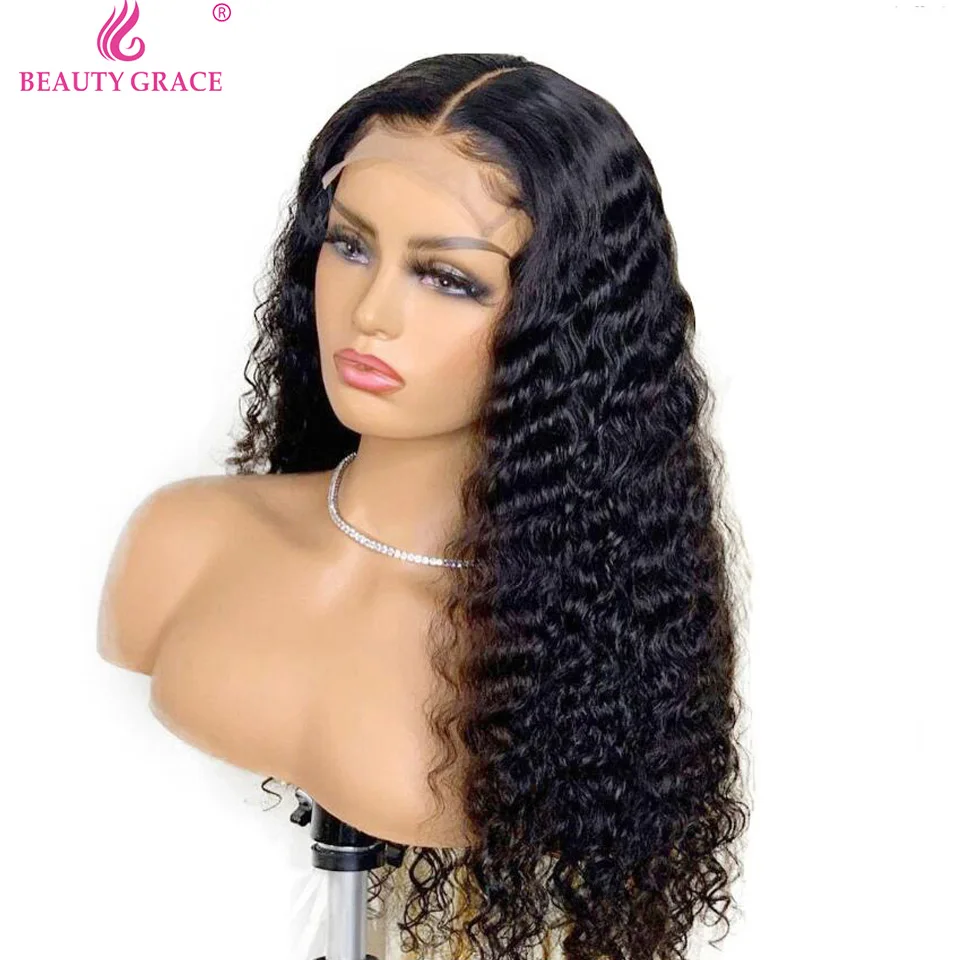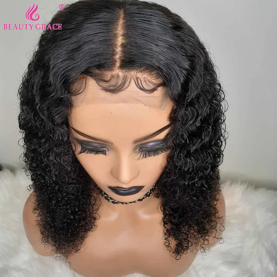 Парики из натуральных вьющихся человеческих волос Beauty Grace, кудрявые влажные и волнистые передние парики из бразильских волос