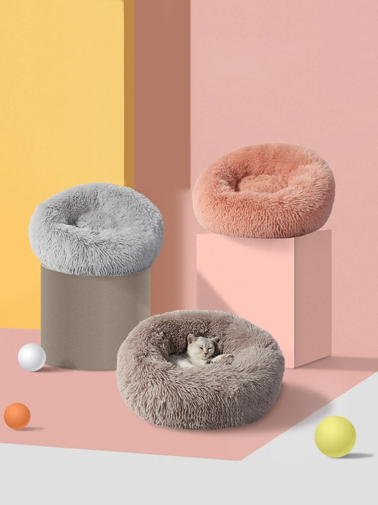 Подстилка для собаки с молнией и пончиком, съемный чехол, круглая подстилка для кошки, стирающаяся подушка для маленьких и больших домашних животных