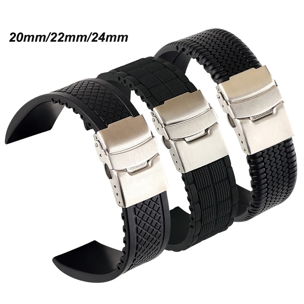 20 мм 22 мм 24 мм черный силиконовый для часов Ремешок для мужчин и женщин спортивный водонепроницаемый складной резиновый ремешок с пряжкой аксессуары для браслета