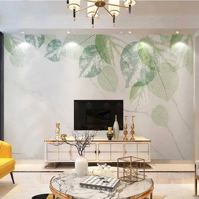 3D обои на заказ, плакат, современный минималистичный лист, мраморный узор, роспись, гостиная, ТВ, диван, домашний декор, фон, Papel Tapiz