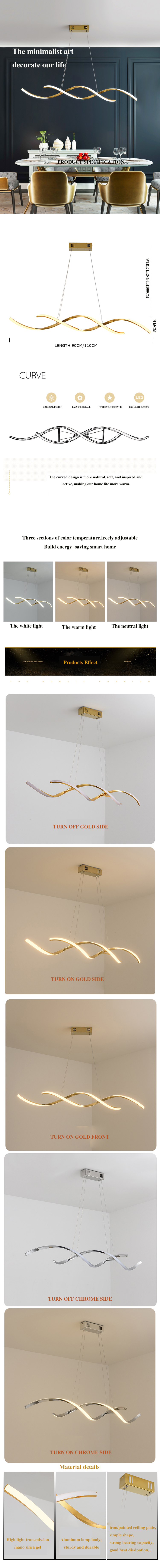Хромированные позолоченные современные светодиодные подвесные светильники для гостиной, спальни, ресторана, кухни, Светильники для внутреннего освещения