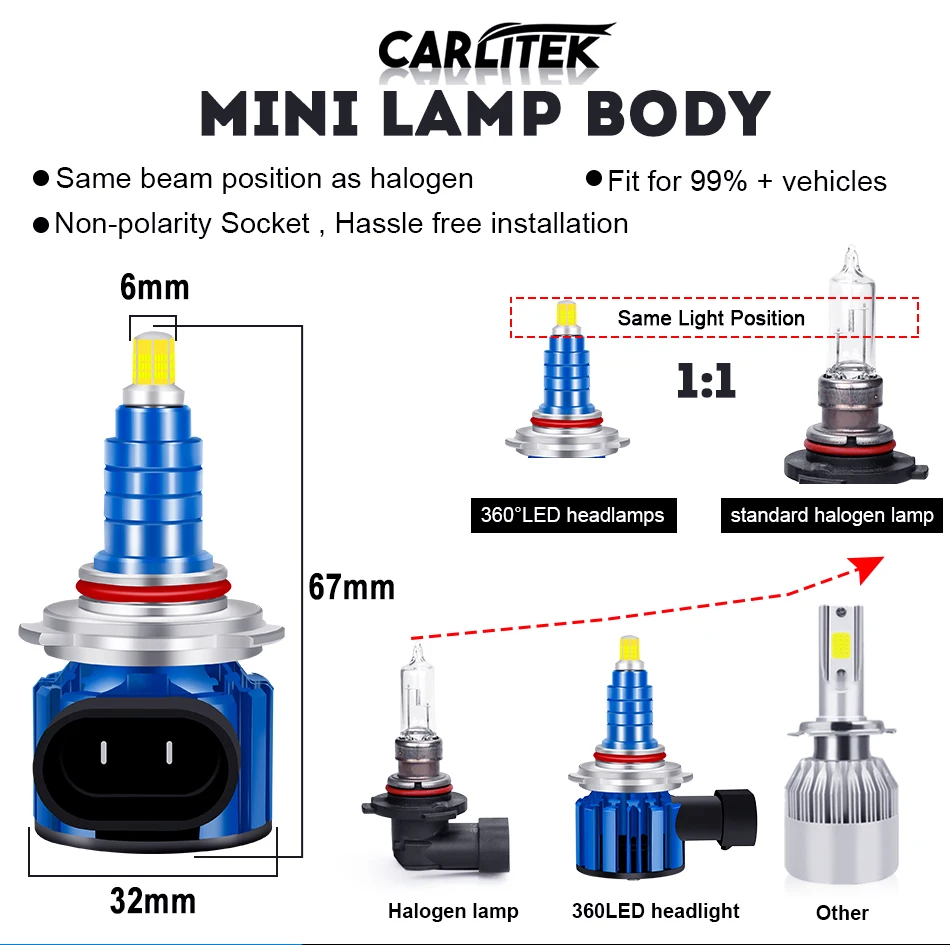 Светодиодные головные фонари H4 H7, 9006 лм, подключи и работай с H8 H11, автомобильные лампы для авто HB4 9005 HB3 360 светильник пы для автомобилей ближнего света Turbo 2 шт.