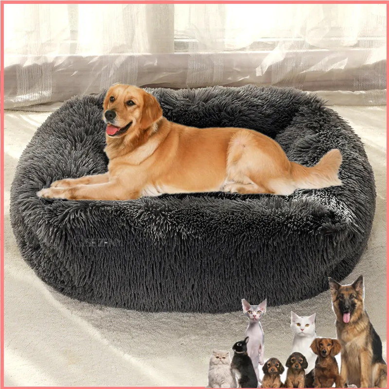 Длинная плюшевая кровать для собак, теплый плюшевый домик для кошек большого размера, квадратные мягкие лежанки для больших собак, кровать для щенков, домик-гнездо, подушка, товар для домашних животных