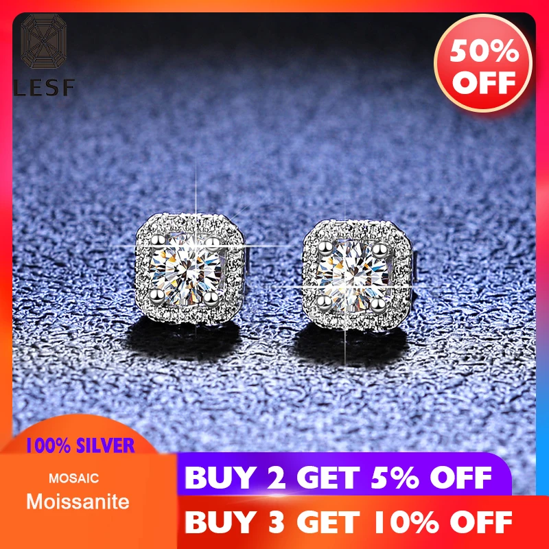 LESF 925 серебро 0,5 карат муассанит Алмаз серьги-пуссеты Обручение...