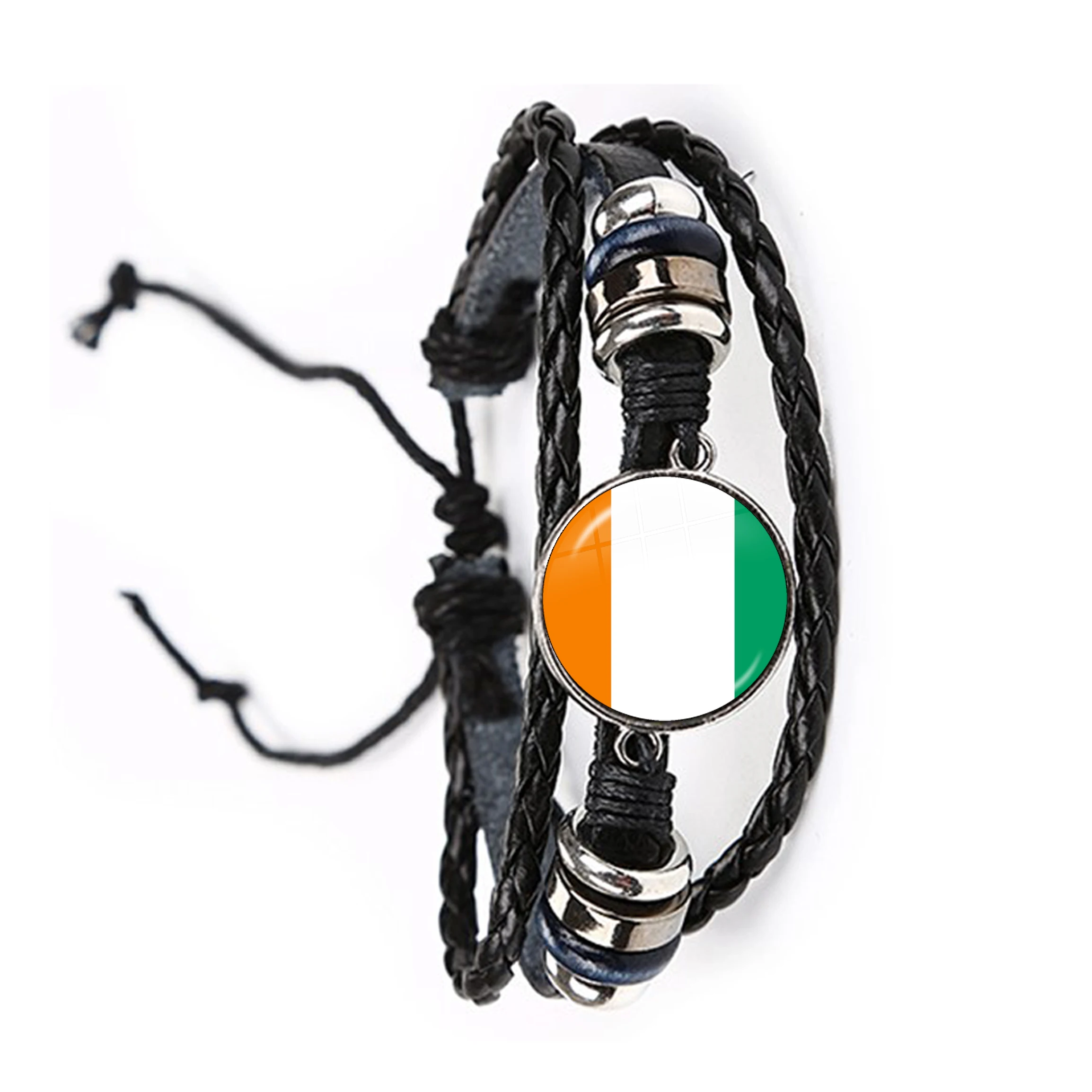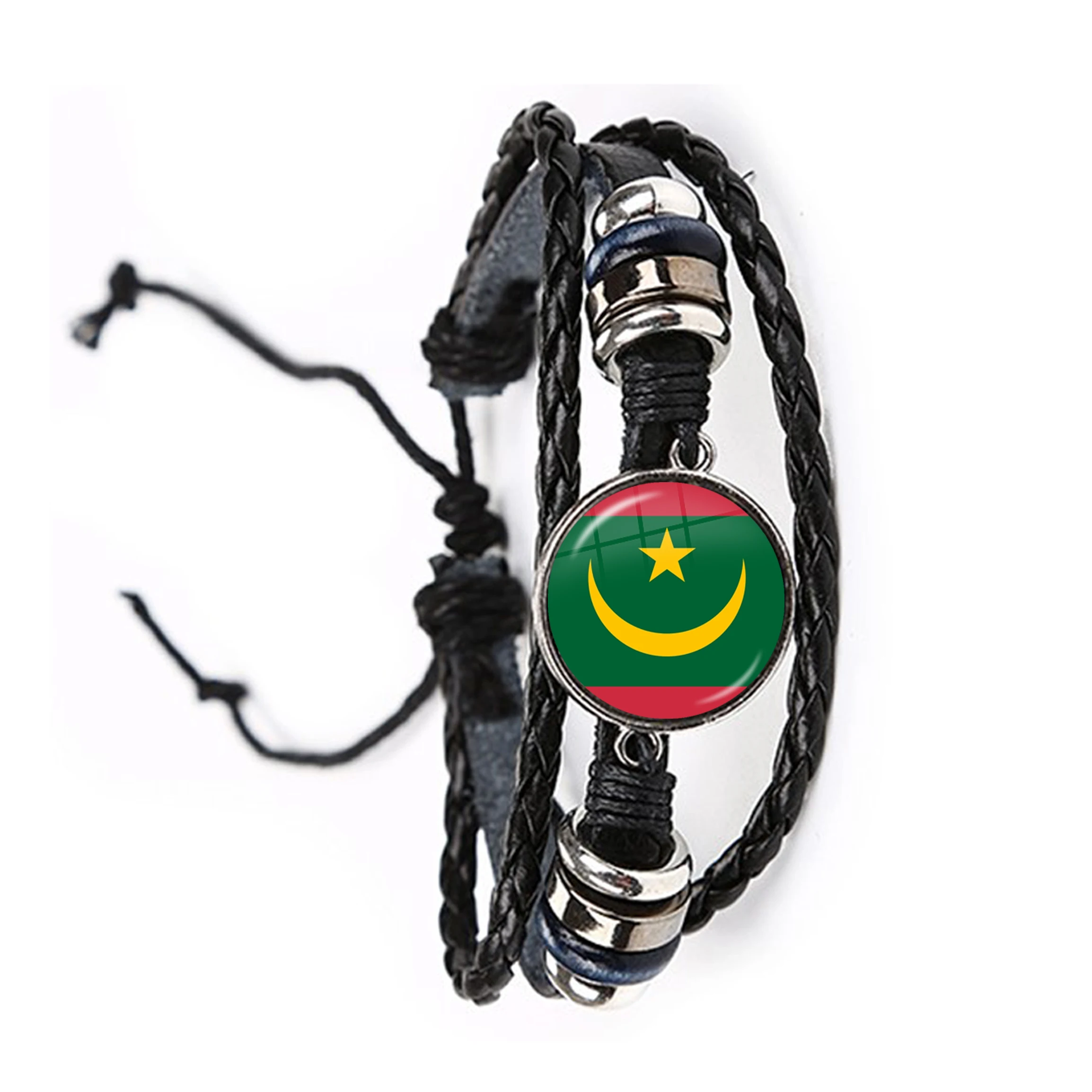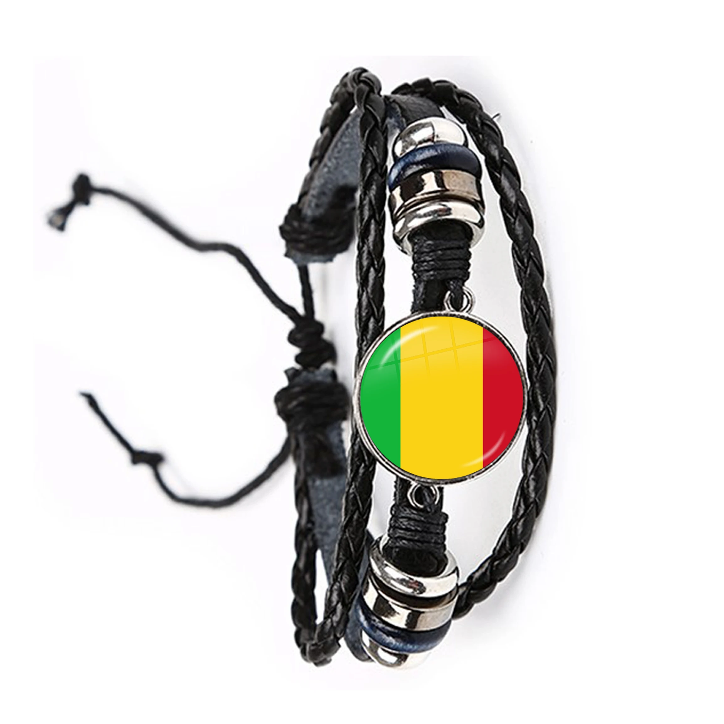 Мавритании, Мали, Руанда, Coate д 'Ивуар, Бурунди, Буркина-Фасо, национальный флаг кожаный браслет со стеклянным кабошоном браслет, ювелирное изделие, подарок