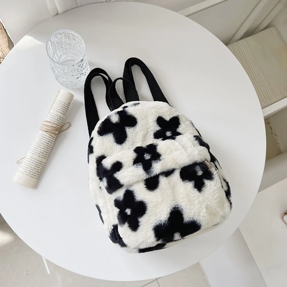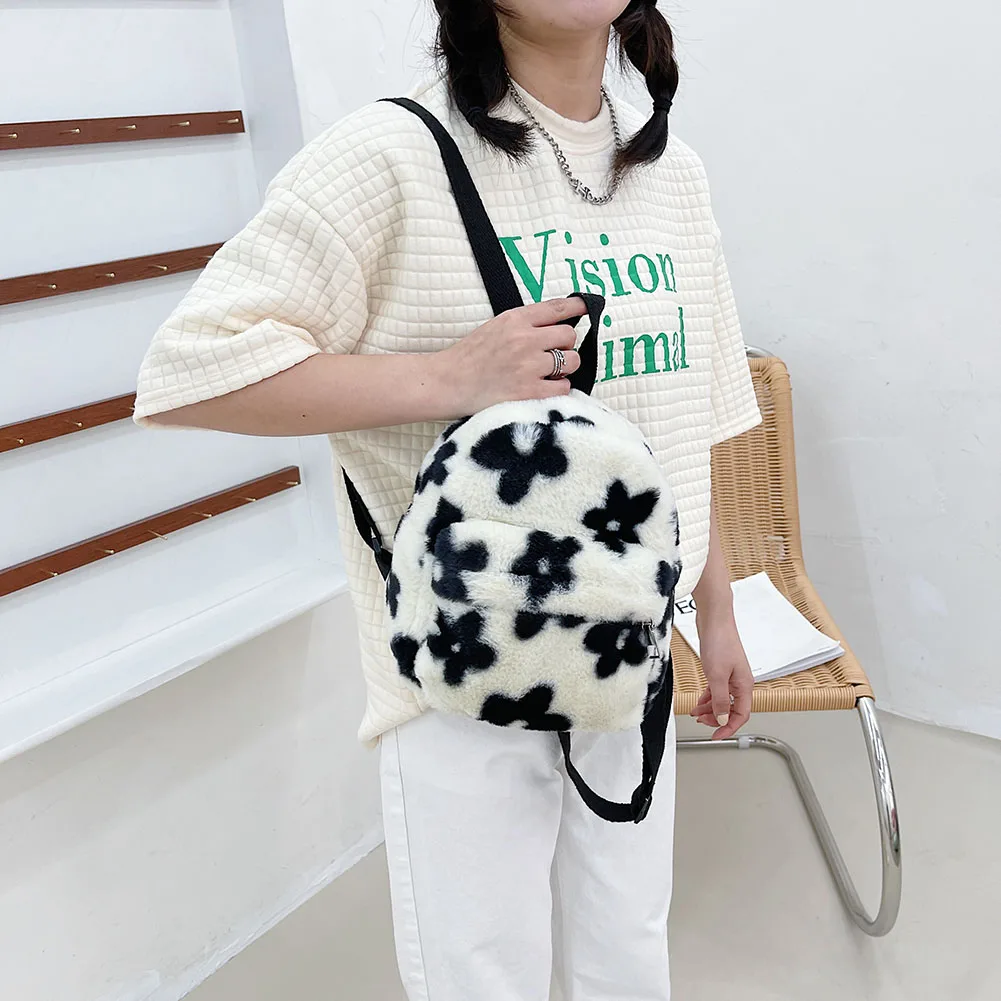 Повседневный Модный женский мини-рюкзак в стиле преппи с цветочным принтом, винтажный плюшевый ранец, Дамская Повседневная простая маленькая сумка