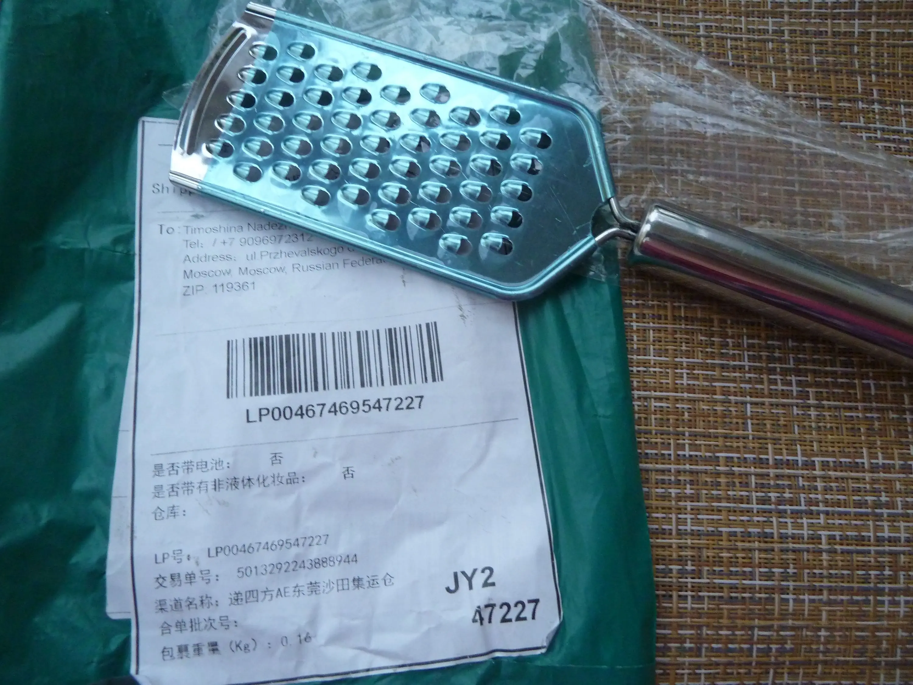доставка быстрая. на вид отличная терка. пока не использовали в деле