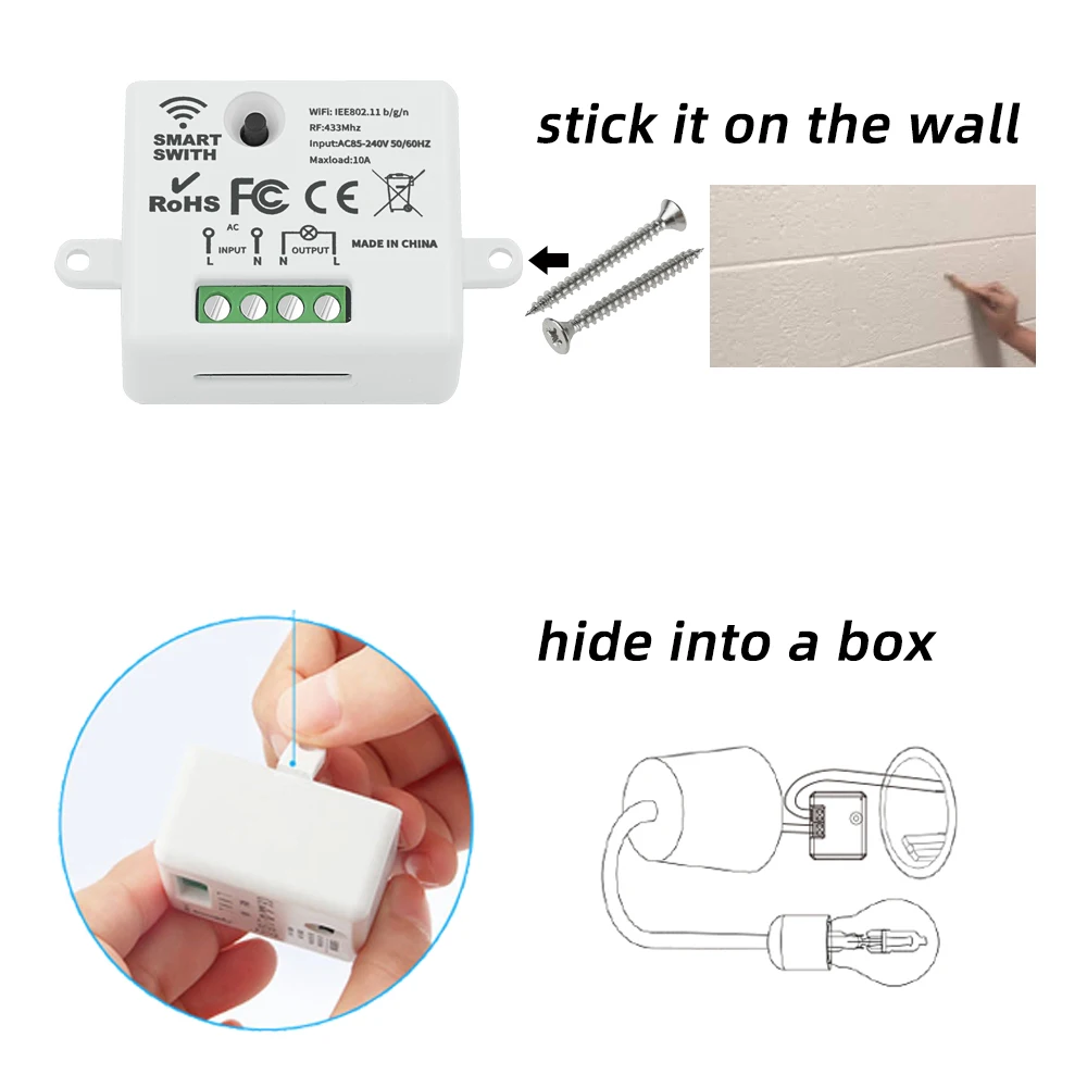 Основные характеристики: 1: идеальный маленький размер (Примечание: посылка включает винт и двустороннюю ленту.) Четыре различных варианта установки:-Используйте двустороннюю ленту для прямой установки и фиксации приемника на поверхности объекта;-Используйте винты для фиксации приемника на поверхности объекта;-Установите приемник за розетку питания;-- Установите за подвесной потолок.Примечание: Если вы хотите спрятаться в коробке, вам нужно сломать отверстия для левого и правого винтов